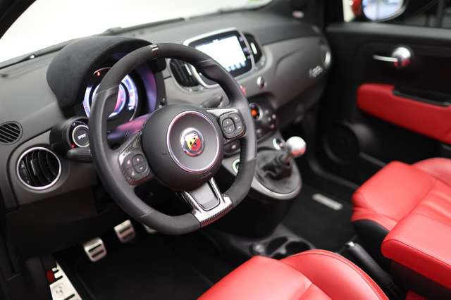 Serienausstattung: ABS mit elektronischer Bremskraftverteilung (EBD) ESP mit Antriebsschlupfregelung (ASR), Motorschleppmomentregelung (MSR), hydraulischem Bremsassistent (HBA) und Anfahrhilfe am Berg (Hill Holder), Airbag für Fahrer und Beifahrer - Beifahrerairbag abschaltbar, Airbag Kopfairbags vorne, Airbag Seitenairbags vorn, Analoges Manometer für den Turbolader, Apple CarPlay / Android Auto, Armaturenbretteinlage in Grau Matt, Außenspiegel elektrisch verstellbar und beheizbar, Brembo 4-Kolben-Festsattel-Bremse (gelochte, innenbelüftete, schwimmend gelagerte Bremsscheiben 305x28mm vorn), Bremssättel rot lackiert Brembo, Dach: Elektrisches Stoff-Faltdach mit Heckscheibe aus Glas, Drehzahlmesser, Dritte Bremsleuchte, Fensterheber elektrisch vorne, Funkfernbedienung für das Ver- / Entriegeln von Türen und Heckklappe, Getönte Fensterscheiben hinten, Getriebe: 5-Gang-Schaltgetriebe - Sportlich abgestimmt, Instrumentenanzeige als 7'' TFT-Farbdisplay - zusätzlich optisches Parksystem in Verbindung mit Parksensoren hinten - Richtungsanzeige als Piktogramm in Verbindung mit Uconnect NAV, Klimaautomatik mit Pollenfilter, Kopfstützen vorn, Leder Alcantara-Lenkrad mit Audio-Bedientatsten und Carbon Einsätzen, Lenkrad höhenverstellbar, Navigation: Uconnect Navigationssystem mit Europakarte und Radio mit 7'' Touchscreen, AUX-IN, USB, Bluetooth, DAB+ und Uconnect LIVE, Nebelscheinwerfer, Reifenreparaturkit Fix & Go, Rücksitzbank geteilt umklappbar mit ISOFIX-Befestigungspunkten und 2 Kopfstützen, Seitenschweller in Karosseriefarbe, Servolenkung, elektrisch (Dual Drive) mit Sport-Funktion, Sportauspuffanlage ''Record Monza'' mit Dual-Mode, vierflutig, Sportfahrwerk: Tiefergelegtes Koni Sportfahrwerk mit FSD-System an der Vorderachse und Hinterachse - Frequency Selective Damping, Sportluftfilter ''BMC'' und Tankdeckel aus Aluminium, Steckdose 12-Volt, Torque Transfer Control (TTC), Wegfahrsperre, Zentralverriegelung mit Funkfernbedienung