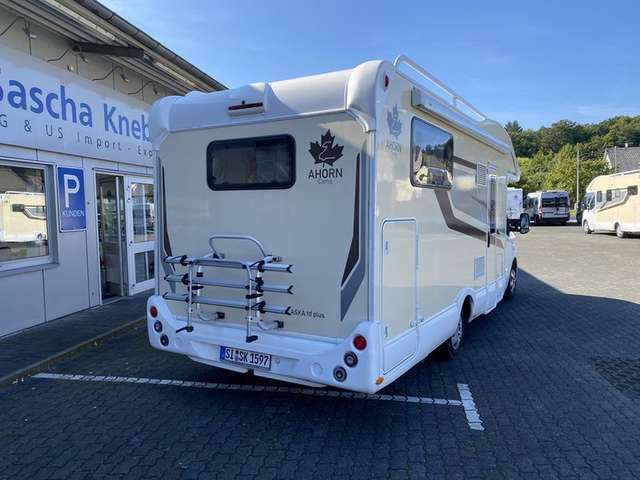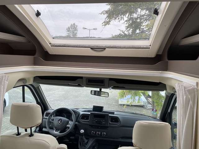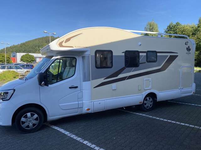 Renault Chassis Paket: Beifahrerairbag, Radio-MP3-Bluetooth-Freisprechanlage(lenkradgesteuert), elektr. Fensterheber und Außenspiegel, je 1 Armlehne, Tempomat, Hill Start Assist, Schmutzfänger vorne, Traction ControlDesign Paket: Chromleisten innen & außen, Stoßstange weiß, Fahrerhaus-Sitzbezüge in WohnraumdesignFahrerhaus KlimaanlageRückfarkameraElektrisches Hubbett über DinetteHöhenverstellbares Heckbett manuell mit Kurbel bei Alaska TDPanoramadach bei TeilintegriertenMarkise Thule 4,0 mAußenleuchte LEDGroßer Kühlschrank mit separatem GefrierschrankGasfilter Truma im GaskastenHeckstützen, manuellFahrradträger Thule (max. Tragkraft 60 kg)Fahrzeugausstattung: