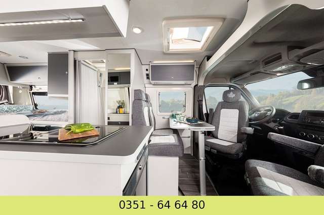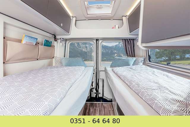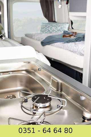 Der preisgekrönte Van 620 ist das perfekte Fahrzeug für Reisende, die kompakt reisen und gleichzeitig von einer umfangreichen Ausstattung profitieren wollen. Die gemütlichen Längsbetten im Heck können durch das Einsetzen eines Zusatzelements verbunden werden. Nützlicher Stauraum befindet sich unter den Betten. Durch viele Schränke und durch das geringe Grundgewicht bietet der Van viele Möglichkeiten, Gepäck zu transportieren. Die voll ausgestattete Küche und die Nasszelle mit Toilette und Dusche ermöglichen autarkes Reisen als Paar, kleine Familie oder mit Freunden. Kühle Getränke lassen sich aus dem Kühlschrank direkt am Eingang auch von draußen herausnehmen.