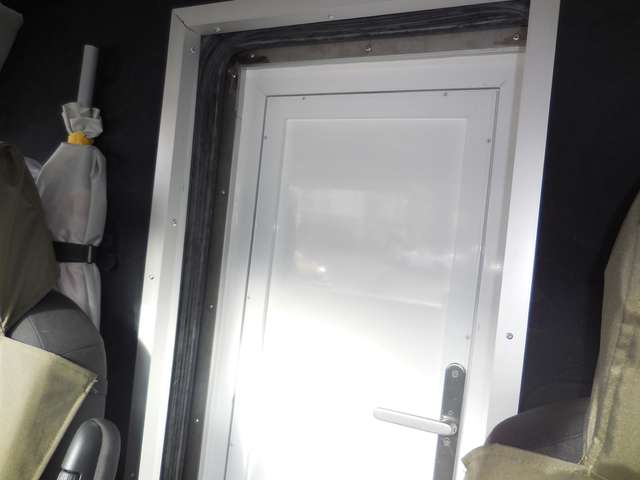 Hünerkopffenster SF3, 3 Fahrerseite, 1 Heck, 1 Beifahrerseite, 1 im Dach zum Austieg geeignet, alle mit Thermorollo und Fliegengaze