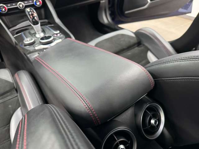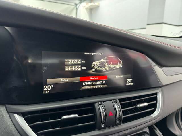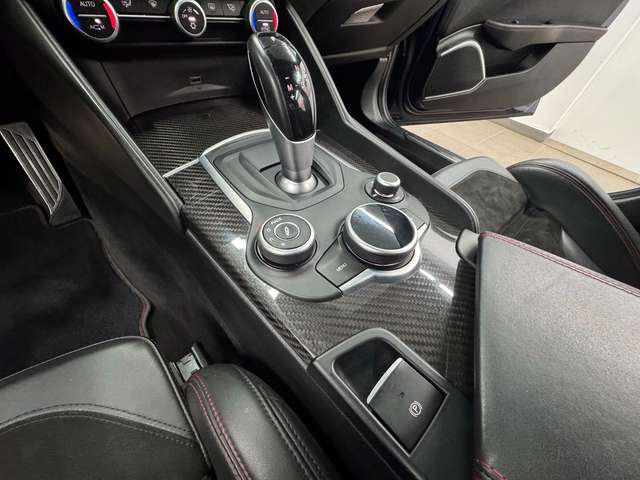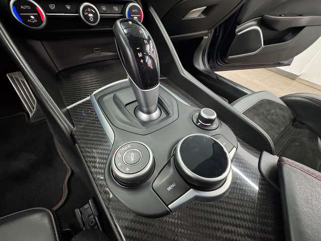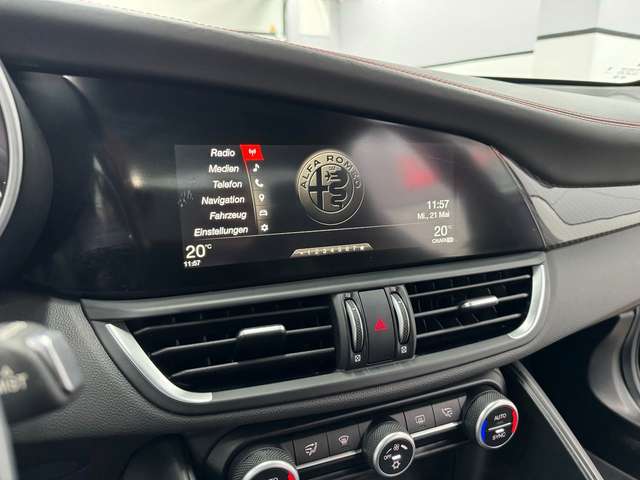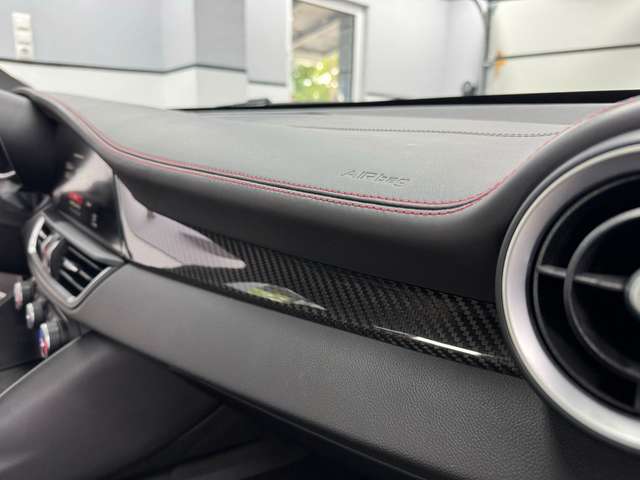 Airbag Beifahrerseite abschaltbar, Airbag Fahrer-/Beifahrerseite, Aktive Giermomentkontrolle (AYC), Aktiver Frontspoiler (Active Aero), Anhänger-Stabilisierungs-Programm (TSA), Antriebs-Schlupfregelung (ASR), Antriebsart: Heckantrieb, Armaturenbrett und Türverkleidungen in Leder, Audio-/Telefonbedienung am Lenkrad, Außenspiegel elektr. verstell-, heiz- und anklappbar, Außenspiegel mit Abblendautomatik, Außenspiegel Wagenfarbe, Bi-Xenon-Scheinwerfer mit dynamischem Kurvenlicht (AFS), Blinkleuchten LED in Außenspiegel integriert, Bremsassistent (HBA / EBA), Bremslicht mit Notfallfunktion (Einschaltautomatik Warnblinkanlage), Bremssättel schwarz lackiert, Dach Carbon, Einparkhilfe elektronisch vorn und hinten, Einstiegsleisten mit Edelstahleinsatz, Elektron. Bremskraftverteiler (EBD), Elektron. Stabilitätskontrolle (ESC), Elektron. Traktionskontrolle, Fahrassistenz-System: Active Torque Vectoring, Fahrassistenz-System: aktiver Spurhalteassistent (LKA), Fahrassistenz-System: Alfa Romeo D.N.A.-Fahrdynamik-System, Fahrassistenz-System: Autonomer Notbrems-Assistent (AEB), Fahrassistenz-System: Berganfahrhilfe (Hill-Holder), Fahrassistenz-System: Fernlichtassistent, Fahrassistenz-System: Frontkollisionswarnung (FCW), Fahrassistenz-System: Spurverlassenswarnung (LDW), Fahrassistenz-System: Totwinkel-Assistent, Fahrwerk Aktiv mit elektronischer Stoßdämpferregelung (Active Suspension), Fensterheber elektrisch vorn + hinten, Fensterrahmen schwarz, Frontgrill Anthrazit, Frontscheibe infrarot-reflektierend, Fußmatten, Getriebe Automatik - (8-Stufen), Getränkehalter, Gurtstraffer, Heckdiffusor, Heckleuchten LED, Heckspoiler (Carbon), Infotainment-Center mit 7" Farbdisplay, Innenausstattung: Interieur dunkel, Dachsäule und Dachhimmel in schwarz, Innenausstattung: Interieurleisten Carbon, Innenspiegel mit Abblendautomatik, Isofix-Aufnahmen für Kindersitz, Karosserie: 4-türig, Klimaautomatik 2-Zonen, Kopf-Airbag-System, Kopfstützen hinten, Kurvenbremskontrolle (CBC / ESBS), Lenkrad (Sport/Leder, unten abgeflacht - Quadrifoglio), Lenksäule (Lenkrad) verstellbar (vertikal / axial), Licht- und Regensensor, Mittelarmlehne vorn mit Ablagefach, Motor 2,9 Ltr. - 375 kW V6 KAT, Motor-Schleppmoment-Regulator (MSR / EDC), Motorhaube Carbon, Parkbremse elektrisch, Pedale Aluminium, Radioempfang Digital (DAB), Radnabenabdeckungen, Radstand 2820 mm, Regen-Bremsassistent (RBA), Reifen-Reparaturkit, Reifendruck-Kontrollsystem, Rückfahrkamera, Schadstoffarm nach Abgasnorm Euro 6, Schalt-/Wählhebelgriff Leder perforiert, Schaltpunktanzeige (Gear Shift Indicator), Scheibenwaschdüsen heizbar, Seitenairbag, Seitenschweller mit Carbon-Applikationen, Sitz vorn links 8-fach verstellbar inkl. Lendenwirbelstütze verstellbar, Sitz vorn rechts 8-fach verstellbar inkl. Lendenwirbelstütze verstellbar, Sitze vorn elektr. verstellbar (6-fach), Sperrdifferential (Q2), Sport-Auspuffanlage, Sportsitze Leder / Mikrofaser / Alcantara, Start-Stop-Knopf, Start/Stop-Anlage, Stoßfänger vorn und hinten im Quadrifoglio Design, Warnanlage für Sicherheitsgurte