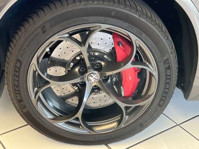 Bremsanlage: Carbon-Keramik, Bremssättel Rot lackiert, Gepäcknetz im Koffer-/Laderaum, Lenkrad (Sport / Alcantara, unten abgeflacht - Quadrifoglio), Metallic-Lackierung, Schienensystem im Kofferraum, Seitenscheiben hinten und Heckscheibe abgedunkelt, Sitze vorn elektr. verstellbar (8-fach), Sound-System Harman-Kardon, USB-Anschluss im Fond