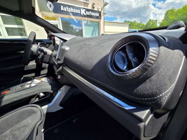 - Weiteres: Reifendruck-Kontrollsystem, Rückfahrkamera, Reifen-Reparaturset, Heckleuchten LED, Einparkhilfe hinten, Geschwindigkeits-Regelanlage (Tempomat) inkl. Geschw.-Begrenzer, Schadstoffarm nach Abgasnorm Euro 6d, Innenraumfilter: Staub- und Pollenfilter, Audio-Navigationssystem (Navigations- und Entertainment-System) mit Touchscreen-Farbdisplay 7 Zoll, Innenausstattung: Interieur in Schwarz und Carbon matt, Scheinwerfer Voll-LED, Innenausstattung: Dinamica, LM-Felgen, 6-Punkt-Sicherheitsgurt Sabelt, Armaturenbrett Mikrofaser, Mittelkonsole Mikrofaser, Dachhimmel Mikrofaser, schwarz, Lenkrad (Sport) Leder / Microfaser, Motor 1,8 Ltr. - 221 kW TCE KAT, Rennsport Schalensitze Sabelt aus Carbon mit Mikrofaser Polsterung, Sonderlackierung Noir Profond, Sound-System Focal High Performance Sound Premium, ConstructionTimeMapping, Airbag Fahrer-/Beifahrerseite, Anti-Blockier-System (ABS), Lenksäule (Lenkrad) höhenverstellbar, Außenspiegel elektr. verstell- und heizbar, Licht- und Regensensor, USB-Anschlüsse, Getriebe 7-Gang - Doppelkupplungsgetriebe, Fensterheber vorn elektr. mit Impulsgeber, Freisprecheinrichtung inkl. Audio-Streaming, Bluetooth, Schaltfunktion (Schaltwippen/-tasten) am Lenkrad, Aluminium, Heckflügelspoiler (Carbon), Ablage-Paket, Aero-Paket, Aktive Abgasanlage (Sport) mit Klappensteuerung, Außenspiegel elektr. anklappbar, Außenspiegel Wagenfarbe, Beifahrerairbag abschaltbar, Berganfahrhilfe, Bremsassistent, Bremssättel Rot lackiert, Carbon Dach, Coming-Home-Lichtfunktion, Elektron. Stabilitäts-Programm, Fronthaube Carbon, Hochleistungs-Bremssystem (Brembo), Innenspiegel mit Abblendautomatik, Klimaautomatik, Lenksäule höhen-/längsverstellbar, Mikrofaser-Paket, Motorabdeckung Carbon, Parkbremse elektrisch, Pedale Aluminium, Schaltpunktanzeige, Seitenschweller Carbon, Sport/Lederlenkrad, Sportreifen, Verglasung hinten abgedunkelt,