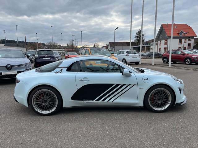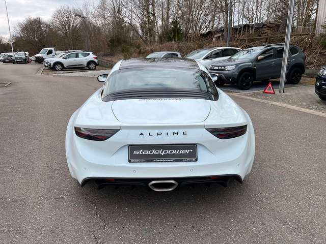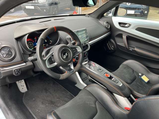 Airbag Beifahrerseite abschaltbar, Airbag Fahrer-/Beifahrerseite, Aktive Abgasanlage (Sport) mit Klappensteuerung, Alpine Telemetrics, Audio-Navigationssystem (Navigations- und Entertainment-System) mit Touchscreen-Farbdisplay 7 Zoll, Außenspiegel elektr. verstell- und heizbar, Außenspiegel Wagenfarbe, Bremsassistent, Coming-Home-Lichtfunktion, Einparkhilfe vorn und hinten, Embleme Alpine, Kotflügel vorn, Freisprecheinrichtung inkl. Audio-Streaming, Bluetooth, Fußstütze Aluminium, Fußstütze Beifahrer Aluminium, Heckleuchten LED, Hochleistungs-Bremssystem (Brembo), Innenausstattung: Dinamica, Innenausstattung: Interieur in Schwarz und Carbon matt, Innenspiegel mit Abblendautomatik, Karosserie: 2-türig, Klimaautomatik, Lenkrad (Sport/Leder), Lenksäule (Lenkrad) höhenverstellbar, Lenksäule (Lenkrad) längsverstellbar, Motor 1,8 Ltr. - 215 kW TCE KAT, Parkbremse elektrisch, Pedale Aluminium, Reifen-Reparaturset, Rennsportsitze Leder / Mikrofaser, Schadstoffarm nach Abgasnorm Euro 6d-TEMP, Schaltpunktanzeige, Sound-System Focal High Performance Sound, USB-Anschlüsse, Verglasung hinten abgedunkelt