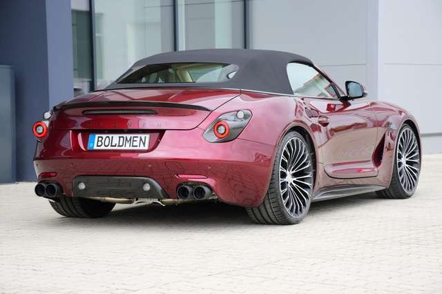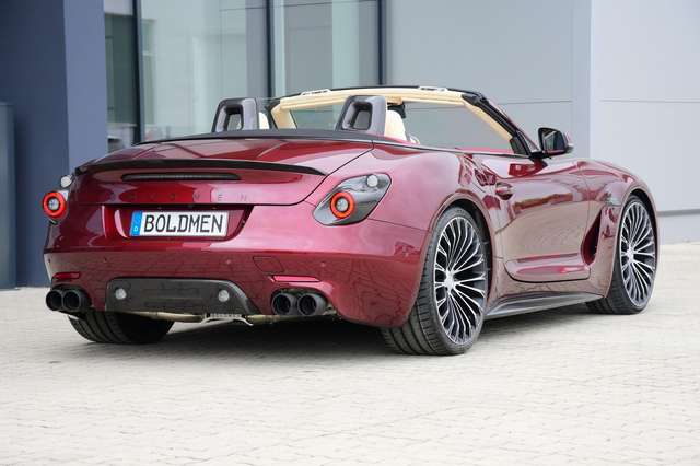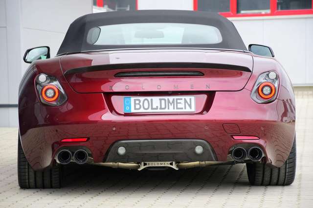 - In Sichtcarbon: Obere Abdeckung Außenspiegelkappen rechts und links, Schweller-Blades, Heckdiffusor, Einfassung Frontscheinwerfer und Heckleuchten, Logohalter BOLDMEN im Fahrzeuggrill