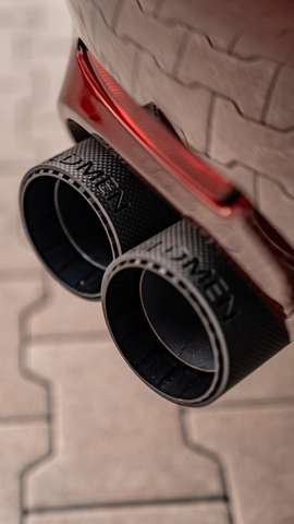 - Handgefertigtes Sport-Endschalldämpfer-System aus hochwertigem Edelstahl mit Carbon-Endrohren und staudrucküberwachter Abgasklappensteuerung