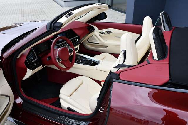 - Lederausstattung: Sportsitze CLASSIC, Innenteil Türverkleidungen, Mittelkonsole, Getriebetunnel rechts und links, diverse Leisten (Farbe nach Wunsch), A-Säule, Dachfrontblende und Sonnenblenden in Alcantara (Farbe nach Wunsch)