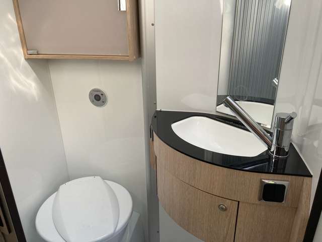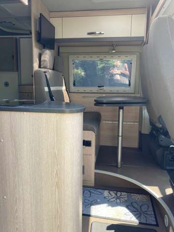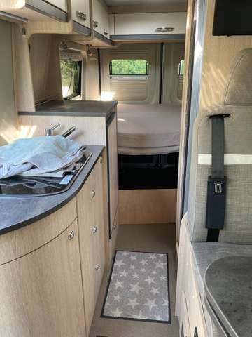 Fahrerkabine mit Remis-Lamellenverdunklung, alle anderen Fenster mit Fliegen- und Verdunkelungsrollos, ausstellbar; Tisch verschiebbar und durch Schwenkteil vergrößerbar; Querbett 140x 195 cm, Schwenkbad, Dometic-Toilette, Dometic-Wechselrichter für eine 230 Volt Steckdose, 250Watt; elektr. Trittstufe; Kompressor-Kühlschrank ( 12 Volt), Truma- Gas-Heizung, 90 l Wassertank
