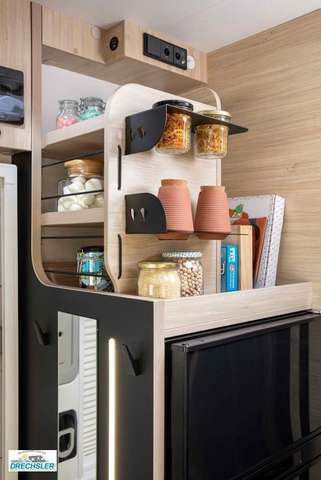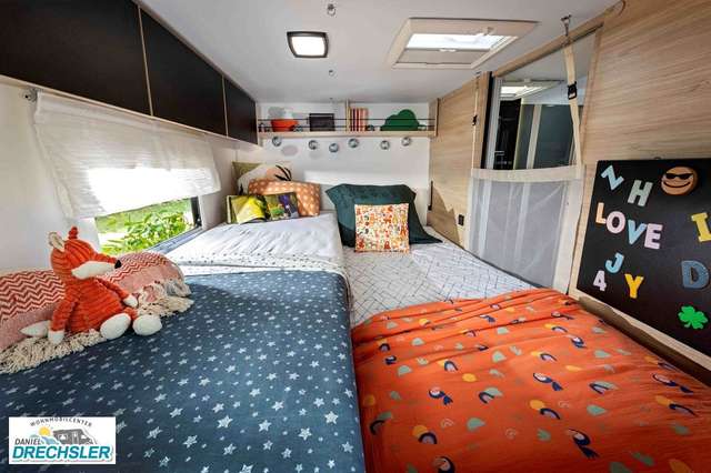 - Zubehör Profil: Markise, Solarmodul, Außenbeleuchtung Eingangstür, Fliegengitter, Innenjalousie Fahrerhaus, Zusatzbett Einzelbetten, Einbaukit für 2. Batterie