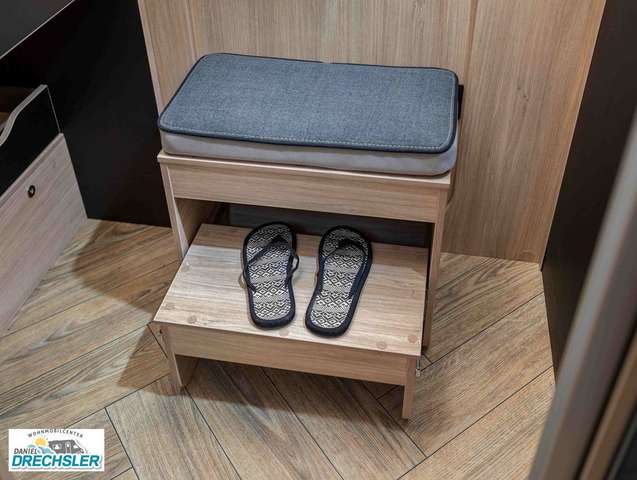 - Etape Edition (3): USB-Anschluss; Vorbereitung Solarpanel; Vorverkabelung Rückfahrkamera; Wasseranschluss außen; Hill Descent control; Isofix Halterungen; Stahlfelgen mit Radkappen 16" grau; Traction +; Schuhregal; Waschraum mit Fenster; XL Aufbau-Tür (60 cm) mit Fenster