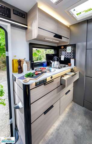 - Open Edition (1): 16” Alufelgen schwarz; Aufbau-Tür mit Fenster; Beleuchtete Eingangsstufe; Dieselheizung nutzbar während der Fahrt mit programmierbarer digitaler Steuerung; ECO Paket: Start/Stop-System inkl. smarter Lichtmaschine; ESP; Elektrische Rückspiegel mit Abtau-Automatik; Exklusiver schwarzer Kühlergrill; Fahrer- und Beifahrerairbag; Fix and Go; Holzlattenrost Dusche; Höhenverstellbare Drehsitze mit zwei Armlehnen; IRP-Struktur: Polyester (GFK) -Boden, -Wände und -Dach, Bodenstärke 64 mm