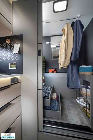 - X Zubehör: Markise, Solarmodul, Außenbeleuchtung Eingangstür, Fliegengitter, Innenjalousie Fahrerhaus, Schlafplatzergänzung Dinette, Einbaukit für die zweite Batterie (1)
