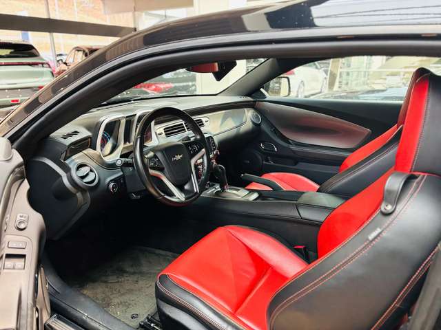 Gepflegter Chevrolet Camaro Coupé 6.2 V8 mit Automatikgetriebe und zweifarbiger Rot/Schwarz-Lederausstattung.