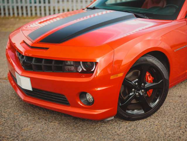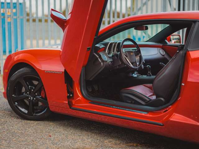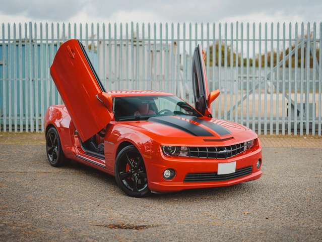 Zum Verkauf steht ein sehr schöner Chevrolet Camaro SS, Baujahr 2013. Das Fahrzeug wurde in Großbritannien importiert und ist ein Linkslenker in hervorragendem Zustand. Die Lackierung in Inferno Metallic Orange ist makellos, ohne Dellen oder größere Kratzer. Der Camaro ist mit einer maßgefertigten Cat-Back-Auspuffanlage, einem BBK-Ansaugsystem und dem „Lambo Doors“-Umbau ausgestattet.
