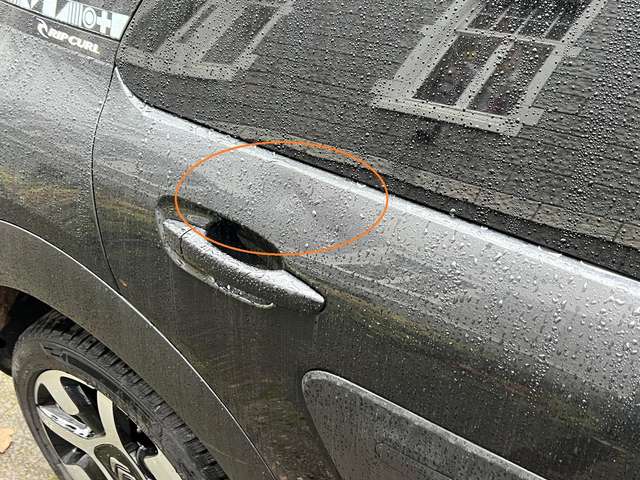 Hinweis: Es gibt eine kleine Delle über dem Griff der hinteren Beifahrertür, die die Funktion nicht beeinträchtigt.