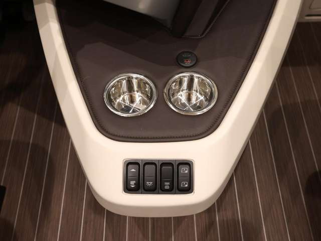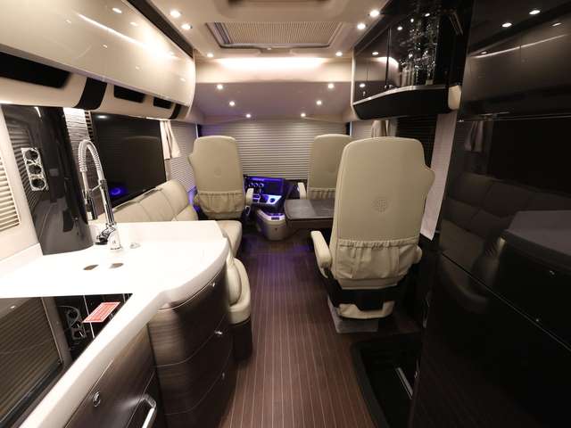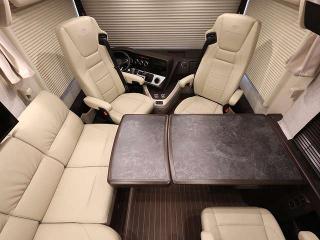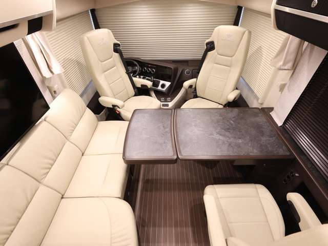 Centurion Style-Paket (Mobelbau in Atlas Zeder mit Dachschrank Möbelfronten in high gloss Senosan creme weiß, mit Griffleisten in Edelstahl-Optik, Außendekor Centurion Style inkl. Schriftzug, Aufbaufenster mit Tönung in privacy black, Jalousien Wohnraum in Holzoptik, Objektbodenbelag Soft-walk im Yacht-Style)