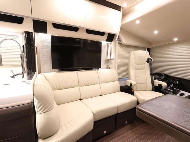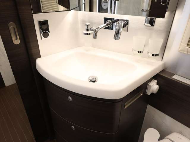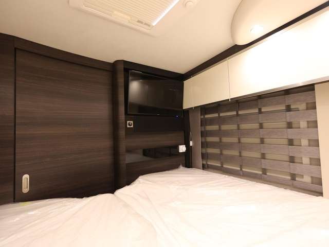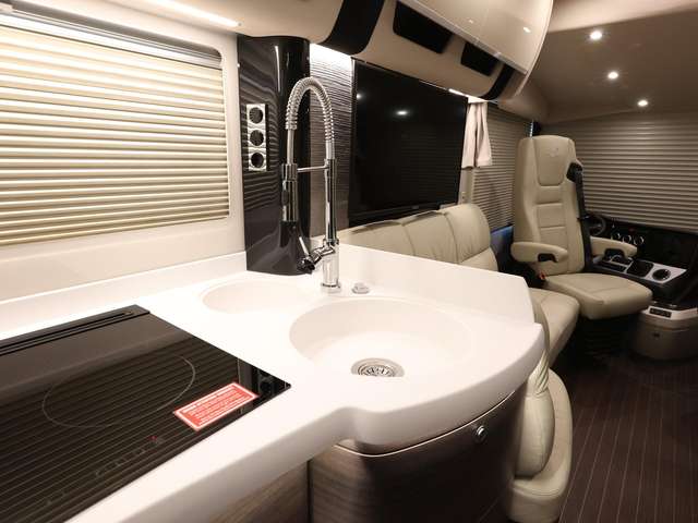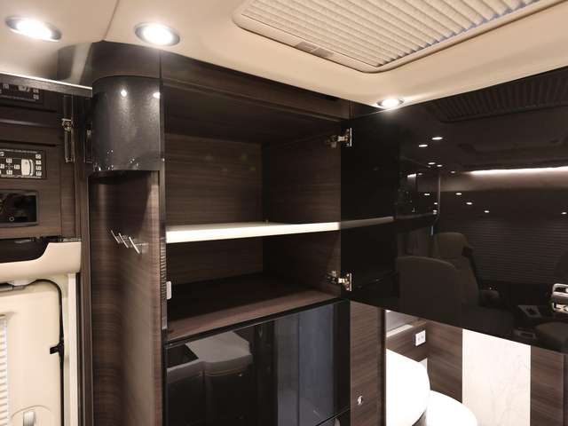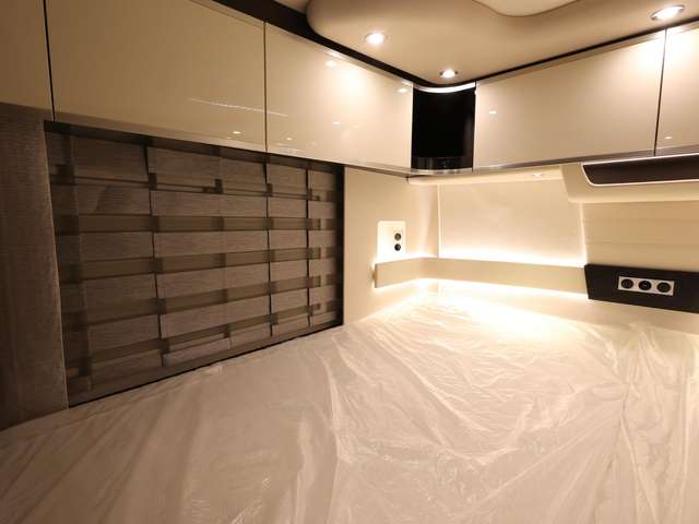 Sat.-TV-Anlage mit Full HD LED Smart TV 40 Zoll im Oberschrank links, elektrisch absenkbar (Satelliten TV-Anlage mit 85-cm-Spiegel, vollautomatische Ausrichtung, Mehrteilnehmer-Ausstattung durch TWIN-LNB)