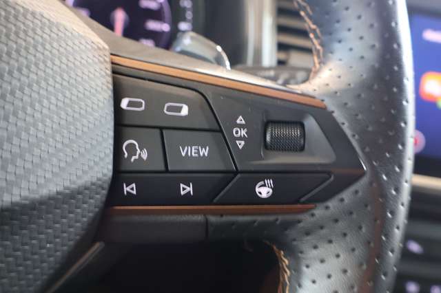 3. Bremsleuchte, Ablagetasche an Vordersitzlehnen, Airbag Beifahrerseite abschaltbar, Airbag Fahrer-/Beifahrerseite, Ambiente-Beleuchtung LED, Antriebs-Schlupfregelung (ASR), Audio-Navigationssystem mit Touchscreen Farbbildschirm, Außenspiegel elektr. verstell-, heiz- und anklappbar mit Spiegelabsenkung und Welcome Light, Bluetooth-Schnittstelle mit Freisprecheinrichtung integriert, Bordcomputer, Brillenfach, Dachhimmel schwarz, Dachreling schwarz, Doppelendrohr Auspuffanlage, links/rechts, Doppeltonhorn, Einstiegsleisten (Aluminium) vorn, beleuchtet, Elektron. Differentialsperre (XDS), Fahrassistenz-System: Adaptive Fahrwerksregelung (DCC), Fahrassistenz-System: Fahrprofilauswahl (CUPRA Drive Profile), Fahrassistenz-System: Parklenkassistent mit Einparkhilfe vorn und hinten inkl. Rückfahrkamera, Fensterheber elektrisch vorn + hinten mit Komfortschaltung, Full Link (MirrorLink, Apple CarPlay und Android Auto), Fußraumbeleuchtung LED, Gepäckraumabdeckung / Rollo, Handschuhfach mit LED-Beleuchtung, Heckleuchten LED mit dynamischem Blinklicht, Heckspoiler Wagenfarbe (Dachspoiler), Induktionsladeschale für Smartphone, Isofix-Aufnahmen für Kindersitz an Rücksitz, Kamerasystem Umgebungsansicht (Top View, 360°), Karosserie: 5-türig, Klimaanlage Climatronic 2-Zonen, Knieairbag Fahrerseite, Kombiinstrument digital (virtual cockpit), Kopf-Airbag-System, Lendenwirbelstütze Sitz vorn links, verstellbar, Lendenwirbelstütze Sitz vorn rechts, verstellbar, Licht- und Sicht-Paket, LM-Felgen, Mittelarmlehne hinten, Mittelkonsole vorn mit Mittelarmlehne, Becherhalter, Ablagebox und Luftausströmer hinten, Modellpflege, Motor 2,0 Ltr. - 221 kW 16V TSI, Notrufsystem, Otto-Partikelfilter (OPF), Parkbremse elektrisch, Pedale Aluminium-Design, Radlaufabdeckung vorn und hinten lackiert, Radstand 2631 mm, Reifen-Reparaturset, Rücksitzlehne geteilt/klappbar (1/3-2/3), Schadstoffarm nach Abgasnorm Euro 6d, Schriftzug auf der Heckklappe, Seitenairbag, Seitenscheiben hinten und Heckscheibe abgedunkelt, Sitz vorn links höhenverstellbar, Sitz vorn rechts höhenverstellbar, Sitzbezug / Polsterung: Sitzmittelbahn in Mikrofaser, Sonnenblende links mit Spiegel (beleuchtet), Sonnenblende rechts mit Spiegel (beleuchtet), Sport-Schalensitze vorn mit integrierten Kopfstützen, Start/Stop-Anlage, Stau-/Ablagefach unter Sitz vorn links, Steckdose (12V-Anschluß) vorn, Stoßfänger hinten Cupra-Design mit Diffusor, Stoßfänger vorn Cupra-Design, USB-Ladeanschlüsse (2-fach, Typ C) für 2.Sitzreihe, Verzurrösen Koffer-/Laderaum, Wärmeschutzverglasung