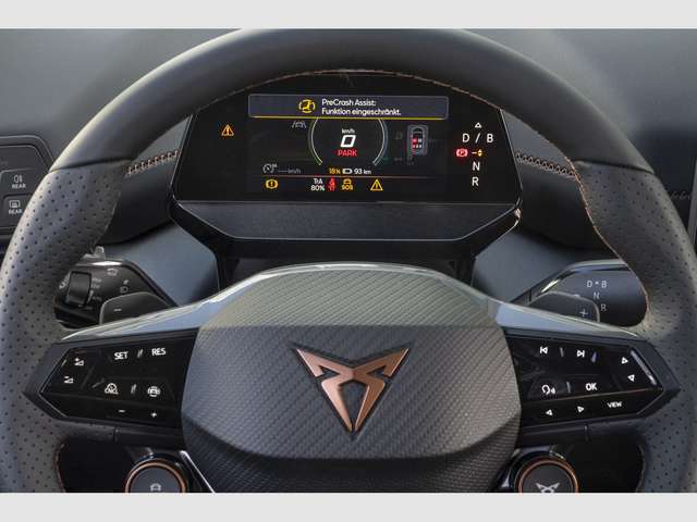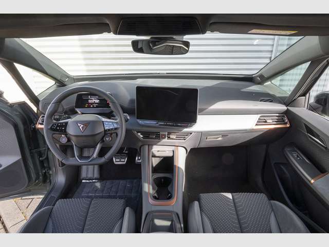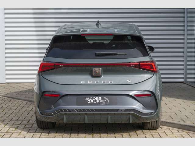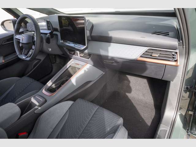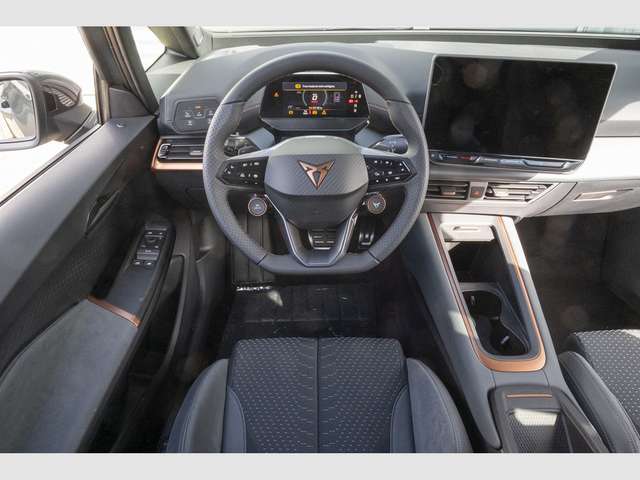 Audio-Navigationssystem mit Touchscreen Farbbildschirm, Radioempfang digital (DAB+), Sprachsteuerungs-System, USB-Schnittstelle vorn (2-fach, Typ C), Dinamica-Paket, grau, Scheibenwaschdüsen heizbar, Mittelarmlehne hinten, Sitzheizung vorn, Sitzbezug / Polsterung: Mikrofaser grau, Sitze vorn elektr. verstellbar (mit Massagefunktion), Sitze vorn mit ausziehbarer Oberschenkelauflage, Lendenwirbelstütze Sitz vorn links, elektr. verstellbar, Fahrassistenz-System: Autom. Distanzregelung (ACC / PCC) mit vorausschauender Geschw.-Regelung, Fahrassistenz-System: Automatische Distanzregelung (ACC), Fahrassistenz-System: Spurhalteassistent, Frontkamera, Scheinwerfer Voll-LED, Abbiege- und Allwetterlicht, 5 Lautsprecher, Airbag Beifahrerseite abschaltbar, Airbag Fahrer-/Beifahrerseite, Akustischer Fußgängerschutz, Außensound (e-sound / AVAS), Ambiente-Beleuchtung LED, Antriebs-Schlupfregelung (ASR), Außenspiegel elektr. verstell-, heiz- und anklappbar mit Spiegelabsenkung und Welcome Light, Blinkleuchten LED in Außenspiegel integriert, Bluetooth-Schnittstelle mit Freisprecheinrichtung integriert, Dachhimmel schwarz, Einparkhilfe vorn und hinten, Elektromotor 170 kW (cont. 70 kW), Elektron. Stabilitätskontrolle (ESC), Fahrassistenz-System: Fahrprofilauswahl (CUPRA Drive Profile), Fahrassistenz-System: Fernlichtassistent, Fahrassistenz-System: Müdigkeitserkennung, Fahrassistenz-System: Umfeldbeobachtungssystem (Front assist) mit City-Notbremsfunktion, Fahrassistenz-System: Verkehrszeichenerkennung, Fensterheber elektrisch vorn + hinten mit Komfortschaltung, Fußraumbeleuchtung LED, Getriebe für Elektrofahrzeug, Heckleuchten Voll-LED mit Lichtband (Infinite Light), Heckspoiler Wagenfarbe (Dachspoiler), HV-Batterie 82 kWh brutto / 77 kWh netto, Induktionsladeschale für Smartphone, Innenspiegel mit Abblendautomatik, Isofix-Aufnahmen für Kindersitz an Beifahrersitz und Rücksitz (inkl. i-Size-Kindersitze), Karosserie: 5-türig, Klimaanlage Climatronic 2-Zonen, Kombiinstrument digital (virtual cockpit), Kopf-Airbag-System, Ladekabel mit Typ 2-Stecker (Mode 3), Lenkrad heizbar (CUPRA Supersport, Leder) mit Multifunktion und Schaltfunktion, Licht- und Regensensor, LM-Felgen, Mittelarmlehne vorn, Notrufsystem, Parkbremse elektrisch, Pedale Aluminium-Design, Progressivlenkung, Reifenkontroll-Anzeige, Rückfahrkamera, Rücksitzlehne geteilt/klappbar (1/3-2/3), Schließ-/Startsystem Kessy Advanced, Schnellladevorrichtung (CCS-Ladedose), Seitenairbag, Seitenairbag vorn mitte (Central Airbag), Service-System: Intelligente Fahrzeugvernetzung (Car2X), Servolenkung elektro-mechanisch, Sitz vorn links höhenverstellbar, Sonnenblende links mit Spiegel (beleuchtet), Sonnenblende rechts mit Spiegel (beleuchtet), Wärmeschutzverglasung.