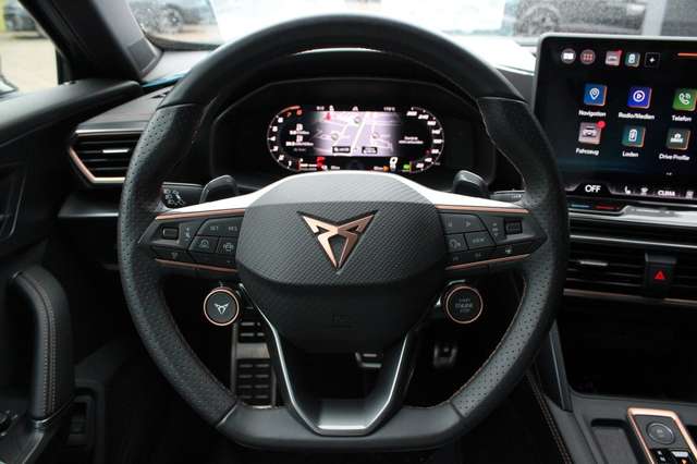 6 Lautsprecher, Abdeckkappen Außenspiegel Schwarz, Airbag Beifahrerseite abschaltbar, Airbag Fahrer-/Beifahrerseite, Außenspiegel elektr. verstell-, heiz- und anklappbar mit Spiegelabsenkung und Welcome Light, Connectivity-Box, Dachhimmel schwarz, Dachreling schwarz, hochglänzend, Design-Paket Dynamic, Differentialsperre (Vorderachse), Edge Paket mit Safesicherung, Einparkhilfe vorn und hinten, Einstiegsleisten vorn beleuchtet, Elektron. Differentialsperre (XDS), Fahrassistenz-System: Adaptive Fahrwerksregelung (DCC), Fahrassistenz-System: Fahrprofilauswahl (CUPRA Drive Profile), Fahrassistenz-System: Pre-Crash-System, Fensterheber elektrisch vorn + hinten mit Komfortschaltung, Fensterzierleisten schwarz, Full Link (MirrorLink, Apple CarPlay und Android Auto), Gepäck-/Laderaumboden doppelt, Gepäckraumabdeckung / Rollo, Gepäckraumbeleuchtung (LED), Handschuhfach mit LED-Beleuchtung, Hybrid 200 kW (Motor 1,5 Ltr. - 130 kW TSI eHybrid), Innenausstattung: Interieurleisten Copper, Isofix-Aufnahmen für Kindersitz an Beifahrersitz und Rücksitz (inkl. i-Size-Kindersitze), Karosserie: 5-türig, Klimaanlage Climatronic 3-Zonen, Kombiinstrument digital (virtual cockpit), Kopf-Airbag-System, Kopfstützen hinten (3-fach), Ladekabel mit Schukostecker, Lendenwirbelstütze Sitz vorn links, verstellbar, Lendenwirbelstütze Sitz vorn rechts, verstellbar, Leseleuchten hinten LED, Leseleuchten vorn LED, Licht- und Sicht-Paket, LM-Felgen, Media-System Plus, Modellpflege, Notrufsystem, Otto-Partikelfilter (OPF), Parkbremse elektrisch mit Auto-Hold-Funktion, Radioempfang digital (DAB+), Radstand Standard, Reifen-Reparaturset, Rücksitzlehne geteilt/klappbar mit Mittelarmlehne und Durchladeeinrichtung, Rücksitzlehnen umklappbar mit Fernentriegelung im Kofferraum, Schadstoffarm nach Abgasnorm Euro 6e, Seitenairbag, Seitenairbag vorn mitte (Central Airbag), Seitenscheiben ab 2.Sitzreihe und Heckscheibe dunkel getönt (Privacy Glass), Seitenscheiben hinten und Heckscheibe abgedunkelt, Sitz vorn links höhenverstellbar, Sitz vorn rechts höhenverstellbar, Sonderlackierung Fiord-Blau, Sonnenblende links mit Spiegel (beleuchtet), Sonnenblende rechts mit Spiegel (beleuchtet), Start/Stop-Anlage, Steckdose 230V im Gepäckraum, USB-Ladeanschlüsse (2-fach, Typ C) für 2.Sitzreihe, USB-Schnittstelle vorn (2-fach, Typ C), Verzurrösen Koffer-/Laderaum, Voll-LED-Paket, Warnanlage für Sicherheitsgurt-System, Wärmeschutzverglasung