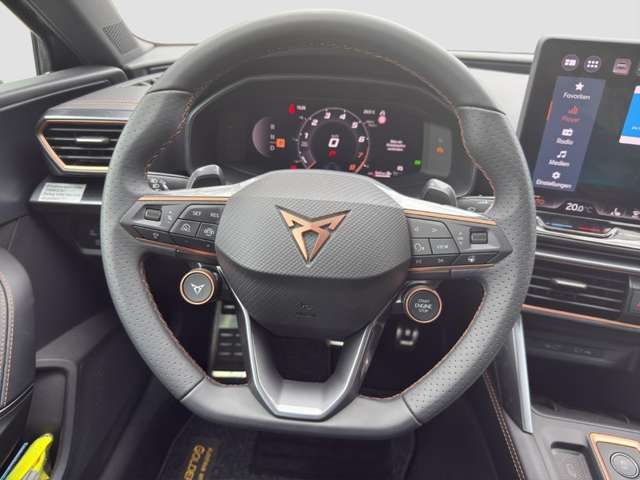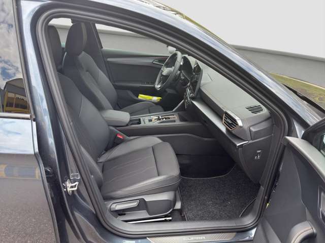- Weiteres: Leuchtweitenregelung automatisch, Getriebe 7-Gang - Doppelkupplungsgetriebe DSG, Reifen-Reparaturset, Sportsitze vorn, Lendenwirbelstütze Sitz vorn rechts, verstellbar, Notrufsystem, Nebelscheinwerfer LED mit Abbiegelicht, Scheinwerfer Voll-LED, USB-Schnittstelle vorn (2-fach, Typ C), Fensterheber elektrisch v+h mit Komfortschaltung, Kombiinstrument digital (virtual cockpit), Zentralverriegelung/Startanlage Keyless Go (Start-Stop-Knopf), Isofix-Aufnahmen für Kindersitz an Beifahrer- & Rücksitz (inkl. i-Size-Kindersitze), Lenkrad heizbar (CUPRA Supersport, Leder) mit Multifunktion & Schaltfunktion, Mild-Hybrid 110 kW (Motor 1,5 Ltr. - 110 kW eTSI), Schadstoffarm nach Abgasnorm Euro 6e, Außenspiegel elektr. verstell-, heiz- & anklappbar mit Spiegelabsenkung & Welcome Light, Connectivity-Box, Innenausstattung: Interieurleisten Copper, Rücksitzlehne geteilt/klappbar mit Mittelarmlehne & Durchladeeinrichtung, Sitzbezug / Polsterung: Stoff/Kunstleder schwarz (Sharp Textil), PROGRESSIVLENKUNG, Abdeckkappen Außenspiegel Dark Aluminium, Audiosystem mit 12,9Touchscreen-Farbdisplay, Rückfahrkamera, LM-Felgen, Schließ-/Startsystem Kessy Advanced mit Safesicherung, Spurhalteassistent Plus inkl. Travel Assist, Emergency Assist & Stauassistent, Audio-Navigationssystem mit Touchscreen Farbbildschirm 12,9, Mobile Online Dienste Cupra Connect plus, Edge Paket mit Safesicherung, Licht- & Regensensor, Reifenkontroll-Anzeige, Airbag: Fahrer-/Beifahrerseite abschaltbar, Seite vorn mitte (Central Airbag), Kopf, Parkbremse elektrisch mit Auto-Hold-Funktion, Gepäckraumabdeckung / Rollo, Full Link (MirrorLink, Apple CarPlay & Android Auto), Heckleuchten Voll-LED mit dynamischem Lichtband (Infinite Light), USB-Ladeanschlüsse (2-fach, Typ C) für 2.Sitzreihe, Gepäckraumbeleuchtung (LED), Seitenscheiben ab 2.Sitzreihe & Heckscheibe dunkel getönt (Privacy Glass), Sicherheitsgurte vorn höhenverstellbar, Ambiente-Beleuchtung LED, Metallic-Lackierung, Ambiente-Beleuchtung Smart Ambient Light, Adaptive Fahrwerksregelung (DCC), Frontantrieb, Autom. Distanzregelung (ACC/PCC) mit vorausschauender Geschw.-Regelung, Climatronic 3-Zonen, Diebstahl-Warnanlage mit Innenraumüberwachung & Abschleppschutz, Differentialsperre (Vorderachse), Einparkhilfe v+h, Einschaltautomatik für Fahrlicht, Elektron. Differentialsperre (XDS), Fahrassistenz-Paket XL, Fahrprofilauswahl (CUPRA Drive Profile), Fernlichtassistent, Gepäck-/Laderaumboden doppelt, Handschuhfach mit LED-Beleuchtung, Innenspiegel mit Abblendautomatik, Kopfstützen hinten, Lendenwirbelstütze, Leseleuchten vorn LED, Licht- & Sicht-Paket, Lichtassistent (Coming Home, Leaving Home), Media-System Plus, Müdigkeitserkennung, Pre-Crash-System, Radioempfang digital (DAB+), Sitzheizung vorn, Sitzhöhenverstellung, Sitzhöhenverstellung Fahrersitz, Spurhalteassistent, Totwinkel-Assistent mit Auspark-Assistent, Spurwechselassistent & Ausstiegswarnung, Umfeldbeobachtungssystem (Front assist) mit City-Notbremsfunktion, Verkehrszeichenerkennung, Voll-LED-Paket, Wärmeschutzverglasung, Winter-Paket