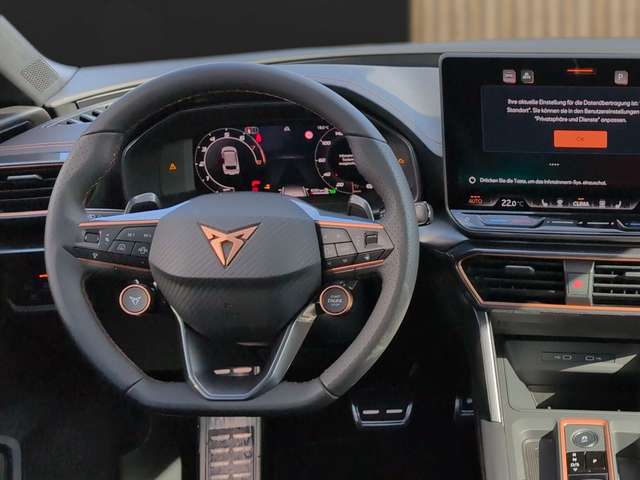 Design-Paket Dynamic, Winter-Paket, Sitzheizung vorn, Außenspiegel elektr. verstell-, heiz- und anklappbar, Spiegelabsenkung, Welcome Light, Memory, Sitzbezug / Polsterung: Stoff Dinamica / Kunstleder schwarz mit blauen Akzenten, Sport-Schalensitze vorn mit integrierten Kopfstützen, Sitz vorn links elektr. verstellbar (mit Memory), Lendenwirbelstütze Sitz vorn links, elektr. verstellbar, Driving-Performance-Paket Polar schwarz / silber, Fahrassistenz-System: Adaptive Fahrwerksregelung (DCC), LM-Felgen, Edge Paket mit Safesicherung, Schließ-/Startsystem Kessy Advanced mit Safesicherung, Heckklappe/-Deckel elektr. betätigt (öffnen + schliessen, sensorgesteuert), Ambiente-Beleuchtung Smart Ambient Light, Ambiente-Beleuchtung LED, Diebstahl-Warnanlage mit Innenraumüberwachung und Abschleppschutz, Rückfahrkamera, 6 Lautsprecher, Abdeckkappen Außenspiegel Dark Aluminium, Airbag Beifahrerseite abschaltbar, Airbag Fahrer-/Beifahrerseite, Antriebsart: Allradantrieb, Außenspiegel elektr. verstell-, heiz- und anklappbar mit Spiegelabsenkung und Welcome Light, Connectivity-Box, Dachhimmel schwarz, Dachreling schwarz, hochglänzend, Differentialsperre (Vorderachse), Einparkhilfe vorn und hinten, Einstiegsleisten vorn beleuchtet, Elektron. Differentialsperre (XDS), Fahrassistenz-System: Autom. Distanzregelung (ACC / PCC) mit vorausschauender Geschw.-Regelung, Fahrassistenz-System: Fahrprofilauswahl (CUPRA Drive Profile), Fahrassistenz-System: Fernlichtassistent, Fahrassistenz-System: Müdigkeitserkennung, Fahrassistenz-System: Spurhalteassistent, Fahrassistenz-System: Umfeldbeobachtungssystem (Front assist) mit City-Notbremsfunktion, Fahrassistenz-System: Verkehrszeichenerkennung, Fensterheber elektrisch vorn + hinten mit Komfortschaltung, Fensterzierleisten schwarz hochglänzend, Full Link (MirrorLink, Apple CarPlay und Android Auto), Gepäckraum-Abtrennung (Netz), Gepäckraumabdeckung / Rollo, Gepäckraumbeleuchtung (LED), Getriebe 7-Gang - Doppelkupplungsgetriebe DSG, Handschuhfach mit LED-Beleuchtung, Innenausstattung: Interieurleisten Copper, Isofix-Aufnahmen für Kindersitz an Beifahrersitz und Rücksitz (inkl. i-Size-Kindersitze), Karosserie: 5-türig, Klimaanlage Climatronic 3-Zonen, Kombiinstrument digital (virtual cockpit), Kopf-Airbag-System, Kopfstützen hinten (3-fach), Lendenwirbelstütze Sitz vorn links, verstellbar, Zentralverriegelung / Startanlage Keyless Go (Start-Stop-Knopf).