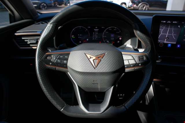 6 Lautsprecher, Airbag Beifahrerseite abschaltbar, Airbag Fahrer-/Beifahrerseite, Akustischer Fußgängerschutz, Außensound (e-sound / AVAS), Ambiente-Beleuchtung Smart Ambient Light, Antriebs-Schlupfregelung (ASR), Audio-Navigationssystem mit Touchscreen Farbbildschirm, Außenspiegel elektr. verstell-, heiz- und anklappbar mit Spiegelabsenkung und Welcome Light, Blinkleuchten LED in Außenspiegel integriert, Dachreling schwarz, hochglänzend, Doppeltonhorn, Dynamic-Paket, Einparkhilfe hinten, Einstiegsleisten (Aluminium) vorn, beleuchtet, Elektron. Differentialsperre (XDS), Fahrassistenz-System: Fahrprofilauswahl (CUPRA Drive Profile), Fahrassistenz-System: Pre-Crash-System, Fensterheber elektrisch vorn + hinten mit Komfortschaltung, Fensterzierleisten schwarz hochglänzend, Gepäckraumabdeckung / Rollo, Heckleuchten LED mit dynamischem Blinklicht, Heckleuchten Voll-LED mit dynamischem Lichtband (Infinite Light), Hybrid 180 kW (Motor 1,4 Ltr. - 110 kW TSI), Induktionsladeschale für Smartphone, Isofix-Aufnahmen für Kindersitz an Rücksitz, Karosserie: 5-türig, Klimaanlage Climatronic 3-Zonen, Kombiinstrument digital (virtual cockpit), Kopf-Airbag-System, Laderaumboden variabel und herausnehmbar, Lendenwirbelstütze Sitz vorn links, verstellbar, Lendenwirbelstütze Sitz vorn rechts, verstellbar, Licht- und Sicht-Paket, LM-Felgen, Mittelarmlehne hinten, Mittelkonsole vorn mit Mittelarmlehne, Becherhalter, Ablagebox und Luftausströmer hinten, Mobile Online Dienste Cupra Connect, Notrufsystem, Parkbremse elektrisch, Radioempfang digital (DAB+), Reifen-Reparaturset, Rücksitzlehne geteilt/klappbar (1/3-2/3), Rücksitzlehnen umklappbar mit Fernentriegelung im Kofferraum, Schadstoffarm nach Abgasnorm Euro 6d, Seitenairbag, Seitenairbag vorn mitte (Central Airbag), Seitenscheiben hinten und Heckscheibe abgedunkelt, Sitz vorn links höhenverstellbar, Sitz vorn rechts höhenverstellbar, Sitzbezug / Polsterung: Stoff, Sonnenblende links mit Spiegel (beleuchtet), Sonnenblende rechts mit Spiegel (beleuchtet), Sport-Schalensitze vorn mit integrierten Kopfstützen, Start/Stop-Anlage, Steckdose (12V-Anschluß) im Koffer-/Laderaum, USB-Ladeanschlüsse (2-fach, Typ C) für 2.Sitzreihe, USB-Schnittstelle vorn (2-fach, Typ C), Verzurrösen Koffer-/Laderaum, Warnanlage für Sicherheitsgurt-System, Wärmeschutzverglasung.