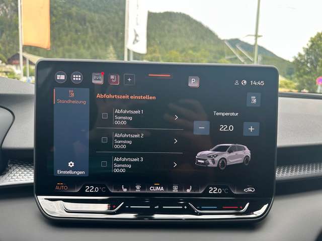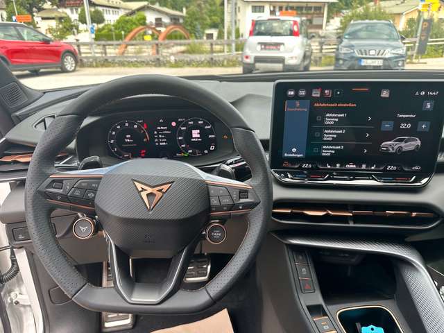 2 Leseleuchten vorn,2 hinten8S42 USB-C-Schnittstellen vorn und 2 USB-C- Ladebuchsen für die 2. SitzreiheU9E3D LED-Heckleuchten mit dynamischen Blinkleuchten und beleuchtetem CUPRA Logo8VP9 Lautsprecher8RXAblenkungs- und MüdigkeitserkennungEM3Airbag für Fahrer und Beifahrer, mit Beifahrerairbag-Deaktivierung4UFAmbientelicht vornQQ1Außenspiegel elektr.einstellbar6XCAusweichunterstützung mit Abbiegeassistent4G3Betriebserlaubnis NachtragC02Car2XGW2Climatronic ( 1-Zonen )KC0CONNECT - vorbereitet für die Nutzung mobiler Online-DiensteEL5Connectivity Box inkl. Wireless Charger9ZPDachreling, schwarz3S5Digitaler RadioempfangQV3Doppelton-Signalhorn8Y1Drive Profile2H5Dynamiklenkung1N7Einparkhilfe vorn und hinten7X2Einstiegleisten vorn7M0Elektronische Parkbremse inkl. Auto-Hold-FunktionUH2Elektronisches Stabilisierungsprogramm und elektromechanischer Bremskraftverstärker1AQFensterheber mit Komfortschaltung und Abschaltsicherung, elektrisch4R4Full Link9WJGeschwindigkeitsregelanlage (GRA) elektronisch8T2Gurtkontrolle, E-Kontakt vorn und hinten, optisch und akustisch9P4Heckscheiben-Wisch-Waschanlage mit Intervallschaltung8M1Höheneinstellung,manuell,für Vordersitze3L3Innenleuchte im Fußraum6T1Kindersitzverankerung für Kindersitzsystem I-Size, 2 x top tether und Kindersitzverankerung vorn BF-Seite3A2Kopfstützen hinten (3 Stück)3Q6KreuzungsassistentJX1Ledersportmultifunktionslenkrad mit Schaltwippen2PELeichtmetallräder 8J x 18F30Lendenwirbelstütze, manuell einstellbar in Vordersitzlehnen7P4Leuchtweitenregulierung,autom.statisch8Q2Media System Plus mit 12,9" Display8DGMittelarmlehne vorn6E3Nebelscheinwerfer und Abbiegeleuchte8WHNotbremsassistent "Front Assist" mit Fußgänger- und Radfahrererkennung8J3Pannen-Set1G8Privater NotrufNZ4Reifen 235/55 R18 100VHA4Reifendruckkontrolle7K1RückfahrkameraKA2Rücksitzlehne geteilt umlegbar5KNScheibenwischer-Intervallschaltung mit Licht/Regensensor8N6Schlüsselloses Startsystem "Keyless-Go"4I7Seitenairbag vorn, mit Kopfairbag und Interaktionsairbag vorn6C2Sicherheitsinnenspiegel automatisch abblendbar4L6Sitzmittelbahn in StoffN0DSonnenblenden mit Spiegel, beleuchtet, mit Airbag-Label auf Sonnenblende und B-Säule5XJSpeedlimiter mit Intelligent Speed Assist (ISA)LT2Sportpedalerie in AluminiumoptikVF1Sportsitze vornQ1DSprachsteuerungQH1Spurhalteassistent6I1Start/Stopp-Anlage mit Rekuperation7L6Tagesfahrlicht mit Assistenzfahrlicht u.Coming- u. Leaving-home Funktion automatisch9I5Variables Ladebodenkonzept3GNVerkehrszeichenerkennungQR9Volldigitales Kombiinstrument mit 10,25" TFT Display9S1Voll-LED-Scheinwerfer8IY