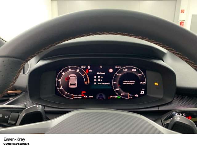 - Weiteres: HD Matrix-LED-Scheinwerfer, Intelligent-Drive-Paket XL, Kamerasystem Umgebungsansicht (Top View, 360°), Ladekabel mit Typ 2-Stecker (Mode 3), Gepäckraum-Trennnetz, Mobile Online Dienste Cupra Connect plus, Leuchtweitenregelung automatisch, Fahrassistenz-System: Spurhalteassistent Plus inkl. Travel Assist, Emergency Assist und Stauassistent, Fernlichtassistent, Intelligenter Parkassistent inkl. trainiertem Parken, Pre-Crash-System, Subwoofer, Totwinkel-Assistent mit Auspark-Assistent, Spurwechselassistent und Ausstiegswarnung, Mittelarmlehne vorn, Rückfahrkamera, Reifen-Reparaturset, Notrufsystem, Lendenwirbelstütze Sitz vorn rechts, verstellbar, Dachreling schwarz, Nebelscheinwerfer LED mit Abbiegelicht, Scheinwerfer Voll-LED, USB-Schnittstelle vorn (2-fach, Typ C), Elektron. Stabilitäts-Programm (ESP) mit Bremskraftverstärker elektro-mechanisch, Heckklappe/-Deckel elektr. betätigt (öffnen + schliessen, sensorgesteuert), Fensterheber elektrisch vorn + hinten mit Komfortschaltung, Getriebe 6-Gang - Doppelkupplungsgetriebe DSG, Seitenairbag vorn mitte (Central Airbag), Zentralverriegelung / Startanlage Keyless Go (Start-Stop-Knopf), Lenkrad heizbar (Sport/Leder) mit Multifunktion und Schaltfunktion, Außenspiegel elektr. verstell-, heiz- und anklappbar, Spiegelabsenkung, Welcome Light, Memory, Isofix-Aufnahmen für Kindersitz an Beifahrersitz und Rücksitz (inkl. i-Size-Kindersitze), Kombiinstrument digital (10,25 Zoll), Radstand Standard, Fahrassistenz-System: Ablenkungs- und Müdigkeitserkennung, Geschwindigkeitsbegrenzer mit vorausschauender Geschw.-Regelung, Schadstoffarm nach Abgasnorm Euro 6e, Lichtassistent (Coming Home, Leaving Home), Hybrid 200 kW (Motor 1,5 Ltr. - 130 kW TSI eHybrid), Connectivity-Box, Rücksitzlehne geteilt/klappbar mit Mittelarmlehne und Durchladeeinrichtung, LM-Felgen, Sitzbezug / Polsterung: Leder dunkelgrau (Moon Slate), Sonderlackierung Matt Enceladus Grey, Edge-Paket, Wegfahrsperre (elektronisch), Kopf-Airbag-System, Reifenkontroll-Anzeige, Seitenairbag, Licht- und Regensensor, Airbag Fahrer-/Beifahrerseite, Heckleuchten LED mit dynamischem Blinklicht, Parkbremse elektrisch mit Auto-Hold-Funktion, Full Link (MirrorLink, Apple CarPlay und Android Auto), Tagfahrlicht LED, USB-Ladeanschlüsse (2-fach, Typ C) für 2.Sitzreihe, Ambiente-Beleuchtung Smart Ambient Light, Abbiegebremsfunktion und Ausweichunterstützung, Adaptive Fahrwerksregelung (DCC), Antriebsart: Frontantrieb, Audiosystem mit 12,9 Touchscreen-Farbdisplay, Automatische Distanzregelung (ACC), Beifahrerairbag abschaltbar, Berg-Anfahr-Assistent, Climatronic 3-Zonen, Diebstahl-Warnanlage mit Innenraumüberwachung und Abschleppschutz, Einparkhilfe vorn und hinten, Fahrersitz elektr. verstellbar/Memory, Fahrprofilauswahl (CUPRA Drive Profile), Fußraumbeleuchtung LED, Gepäck-/Laderaumboden doppelt, getönte Scheiben - Privacy Glass, Innenspiegel mit Abblendautomatik, Kopfstützen hinten, Kreuzungs-Assistent, Lendenwirbelstütze, Leseleuchten vorn LED, Media-System Plus, Mittelarmlehne hinten, Pedale Aluminium-Design, Progressivlenkung, Radioempfang digital (DAB+), Schließ -/ Startsystem Kessy, Sitzheizung vorn, Sitzhöhenverstellung, Sitzhöhenverstellung Fahrersitz
