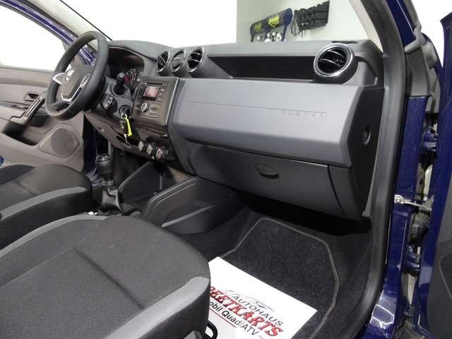 Airbag Beifahrerseite, Airbag Beifahrerseite abschaltbar, Airbag Fahrerseite, Antischlupfregelung (ASR), Audiosystem: Radio-CD (MP3-fähig) mit AUX-IN, USB-Anschluss und Bluetooth (Dacia Plug & Radio), Automatische Fahrlichtschaltung / Lichtsensor, Außenspiegel schwarz, Außentemperaturanzeige, Bordcomputer, Bremsassistent, Dachreling, Fahrassistenz-System: Berganfahr-Assistent (HSA), Geschwindigkeits-Begrenzeranlage, Heckscheibe heizbar, Heckscheibenwischer, Isofix-Aufnahmen für Kindersitz an Rücksitz, Karosserie: 5-türig, Kopf-Airbag-System seitlich, Kopfstützen hinten mechan. verstellbar (3 Stück), Motor 1,6 Ltr. - 84 kW SCe KAT, Radstand 2673 mm, Raucher-Paket, Reifendruck-Kontrollsystem, Rücksitzbank (2.Reihe) einteilig, klappbar, Schadstoffarm nach Abgasnorm Euro 6, Seitenairbag vorn, Servolenkung elektrisch, Sitzbezug / Polsterung: Stoff Essential, Start/Stop-Anlage, Stoßfänger Wagenfarbe