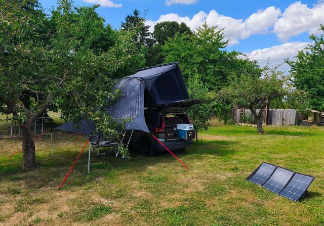 Das Dachzelt inkl. Zubehör und Dachträger kann für 2.000 € zusätzlich dazu erworben werden.