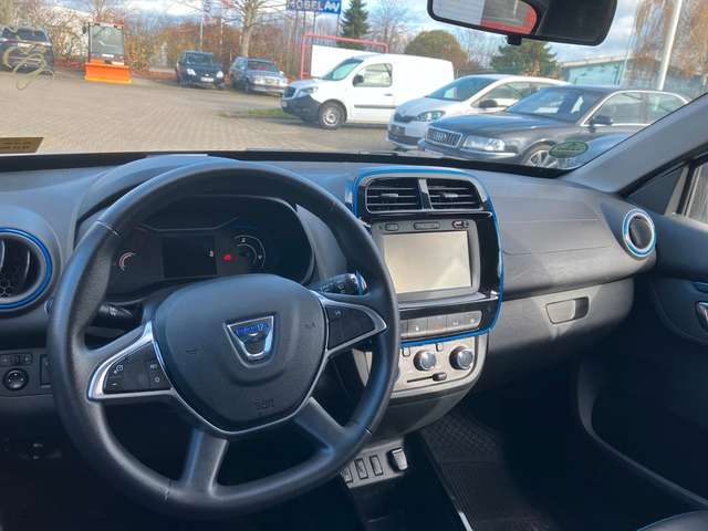 Airbag Beifahrerseite, Airbag Fahrerseite, Audiosystem: Radio-CD (MP3-fähig) mit AUX-IN, USB-Anschluss und Bluetooth (Dacia Plug & Radio), Automatische Fahrlichtschaltung / Lichtsensor, Außenspiegel elektr. verstellbar, Bordcomputer, Bremsassistent, Eco Mode (Fahrmodusschalter), Elektromotor 33 kW (cont. 19 kW), Fahrassistenz-System: Aktiver Notbrems-Assistent, Fahrassistenz-System: Berganfahr-Assistent (HSA), Fahrassistenz-System: Sicherheitssystem mit automatischem Notruf (ERA GLONASS / eCall), Fensterheber elektrisch hinten, Geschwindigkeits-Begrenzeranlage, Getriebe für Elektrofahrzeug, Innenraumfilter: Pollenfilter, Isofix-Aufnahmen für Kindersitz an Rücksitz, Karosserie: 5-türig, Kopf-Airbag-System (Windowbag) vorn + hinten, Ladekabel mit Typ2/Typ2 (Mode 3), Lenksäule (Lenkrad) höhenverstellbar, Radzierkappen, Reifendruck-Kontrollsystem, Reserverad in Fahrbereifung, Rücksitzbank (2.Reihe) einteilig, klappbar, Seitenairbag vorn, Sitzbezug / Polsterung: Kunstleder / Stoff, Türverriegelung automatisch