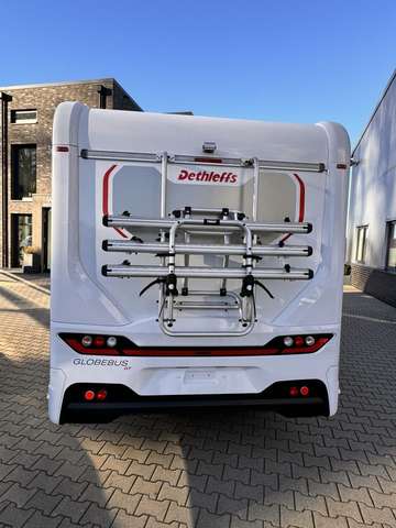 - Globebus GT Paket Teil (2/2): Höhen- und Neigeverstellbar inkl. zwei gepolsterte Armlehnen für Fahrer- und Beifahrersitz, Radioantenne DAB+ auf dem Dach montiert, Vorbereitung für Radiosystem inkl. Soundpaket im Fahrerhaus, Alufelge Fiat 16 Zoll , Außendesign GT (Lackierung I-Front teilweise schwarz, erweiterte Beklebung GT, Skidplate "rot"), Küchenrückwand "Grau Metallic", Steckdosen und Schalter in Bicolor, Doppelverglaste Rahmenfenster mit Verdunklung & Mückenschutz, Hoher charakteristischer Dethleffs Exklusiv Heckleuchtenträger mit 3. Bremsleuchte