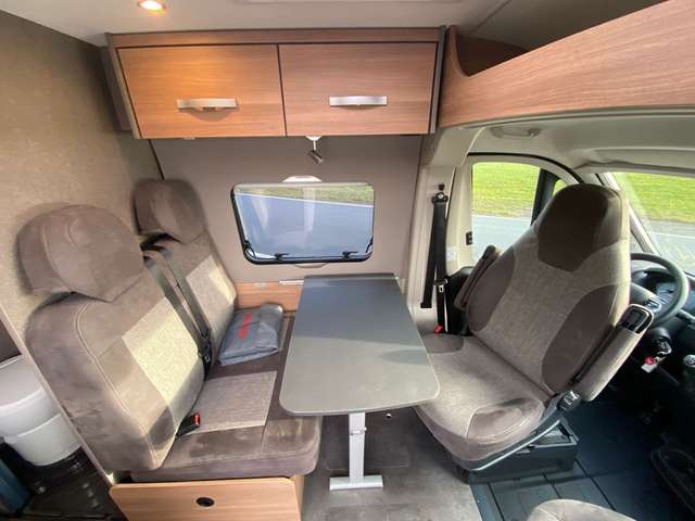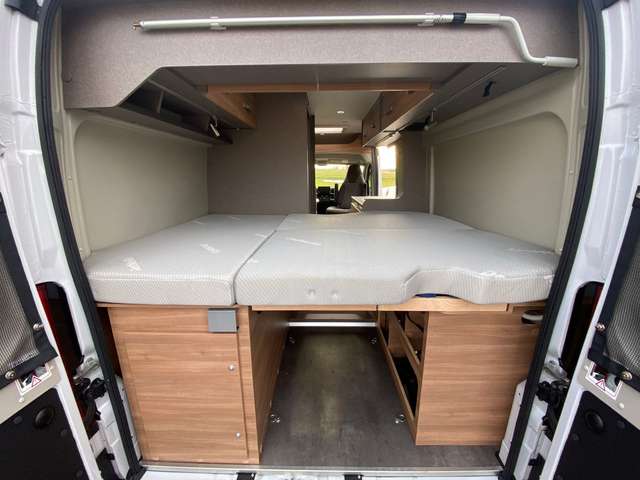 - Elektro Paket: LED-Lichtröhre in der Küche, Zusätzliche Doppel-USB-Steckdose im Bug links, 230-V-Steckdose im Oberschrank Bug links (Sitzgruppe), 12-V-Steckdose im Heckbereich links unten