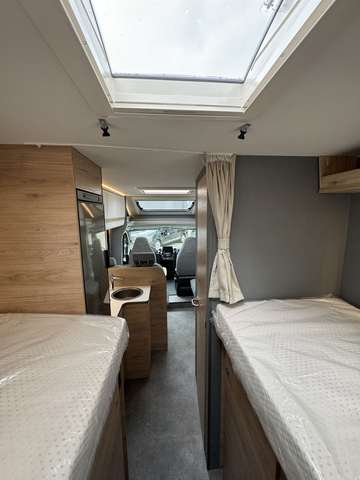 - Family-Paket: Ausstellfenster in der T-Haube, Wohnraumtür mit Fenster inkl. Verdunkelung und Zentralverriegelung (inkl. Fahrerhaustüre), Verdunklungsjalousien im Fahrerhaus, Panorama-Dachhaube 70 x 50 cm im Wohnraum, Indirekte Ambientebeleuchtung über den Dachstauschränken, Indirekte Wandflächen-Ambientebeleuchtung , Bettumbau Einzelbetten zu Doppelbett, Gemütliche L-Sitzgruppe mit freistehendem, absenkbarem Tischfuß und 2 integrierte 3-Punkt-Gurte, Stauraum-Türe links