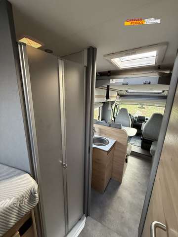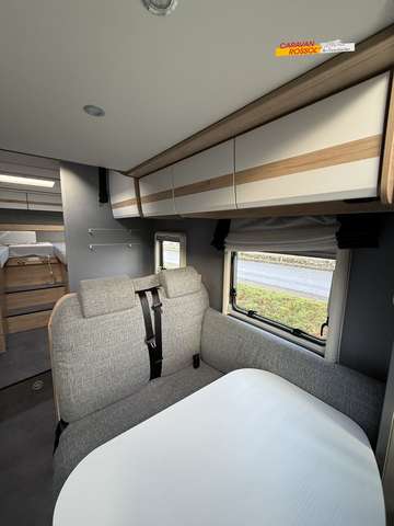 - Family-Paket T 7052 DBM (Ausstellfenster in der T-Haube, Wohnraumtür mit Fenster inkl. Verdunkelung und Zentralverriegelung (inkl. Fahrerhaustüre), Verdunklungsjalousien im Fahrerhaus, Panorama-Dachhaube 70 x 50 cm im Wohnraum, Light Moments: Indirekte Ambientebeleuchtung über den Dachstauschränken, Light Moments: Indirekte Wandflächen-Ambientebeleuchtung, Stauraum-Türe links, Gemütliche L-Sitzgruppe mit freistehendem, absenkbarem Tischfuß und 2 integrierte 3-Punkt-Gurte)