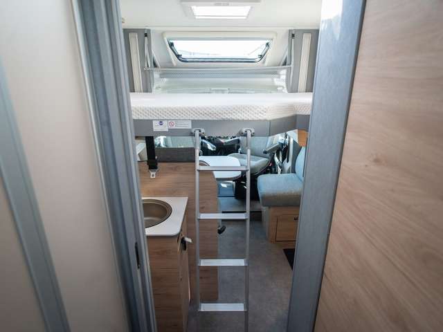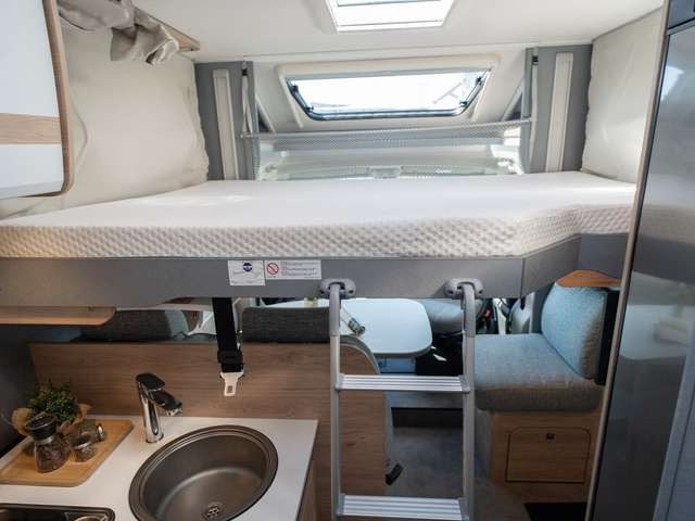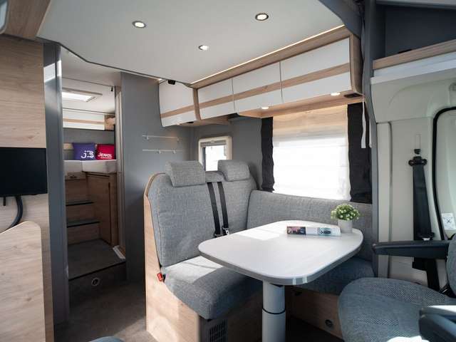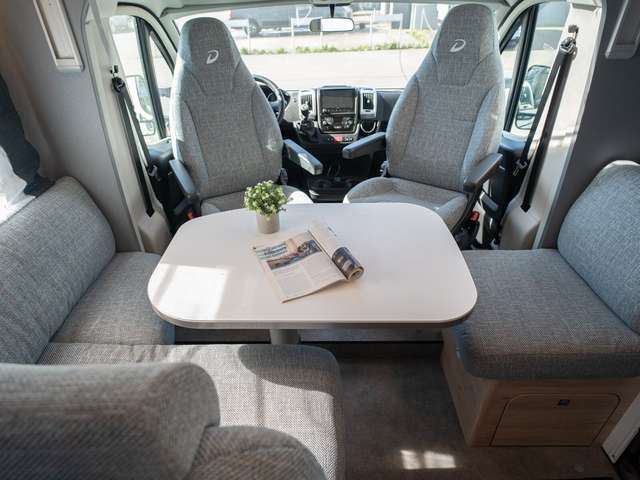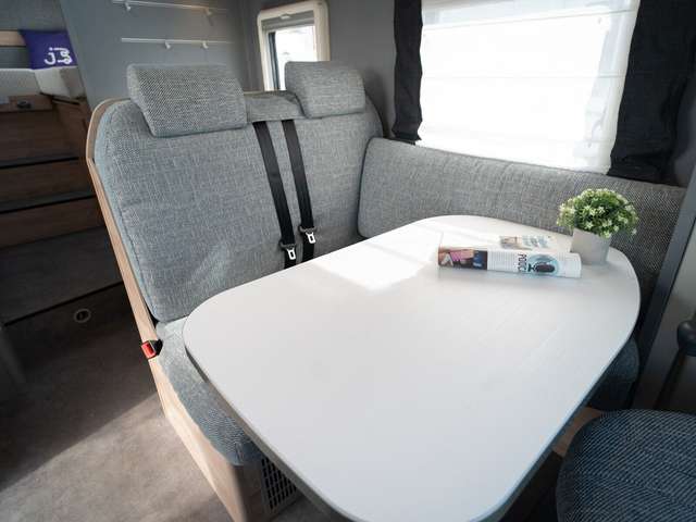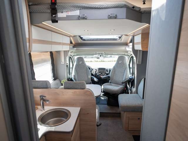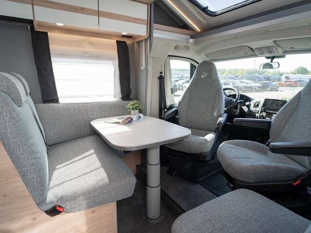 - Family-Paket T 6812, 7052 EB (Ausstellfenster in der T-Haube, Wohnraumtür mit Fenster inkl. Verdunkelung und Zentralverriegelung (inkl. Fahrerhaustüre), Verdunklungsjalousien im Fahrerhaus, Panorama-Dachhaube 70 x 50 cm im Wohnraum, Light Moments: Indirekte Ambientebeleuchtung über den Dachstauschränken, Light Moments: Indirekte Wandflächen-Ambientebeleuchtung, Bettumbau Einzelbetten zu Doppelbett, Gemütliche L-Sitzgruppe mit freistehendem, absenkbarem Tischfuß und 2 integrierte 3-Punkt-Gurte, Stauraum-Türe links)
