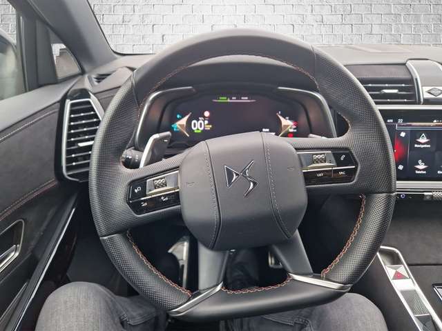Airbag Beifahrerseite abschaltbar, Airbag Fahrer-/Beifahrerseite, Aktives Federungs-/Dämpfersystem (DS Active Scan Suspension), Akustischer Fußgängerschutz (Außensound), Ambiente-Beleuchtung LED, Automatik-Sicherheitsgurte hinten, Außenspiegel anklappbar, mit Umfeldleuchte, Einparkhilfe / Rückfahrhilfe / Totwinkel-Assistent und Memoryfunktion, Außenspiegel mit Einparkfunktion/Rückwärtsparkhilfe, Außenspiegel Schwarz, Spiegelfuss Wagenfarbe, Außentemperaturanzeige, Dachreling schwarz, Einparkhilfe vorn und hinten inkl. Kamera, Einschaltautomatik für Fahrlicht, Einstiegsleisten vorn (Metall) mit Schriftzug (Logo), Elektr. Bremskraftverteilung, Elektromotor vorn 81 kW / hinten 83 kW (Hybridantrieb), Fahrassistenz-System: Notbrems-Assistent, Fensterheber elektrisch hinten, Fensterzierleisten schwarz glänzend, Frontscheibe Akustikglas, Fußmatten Design, Fußraumbeleuchtung vorn LED, Fußraumleuchte Fahrer, Beifahrer, Fzg. ohne Induktionsladeschale für Smartphone, Fzg. ohne Rückenlehnenverstellung hinten, Getränkehalter, Getränkehalter vorn, Gurtstraffer mit Kraftbegrenzer, Handschuhfach mit Kühlfunktion, Heckscheibe heizbar, Heckscheibenwischer, Hybrid 265 kW (Motor 1,6 Ltr. - 147 kW), Innenausstattung: Dekoreinlagen Armaturenbrett, Alcantara, Innenausstattung: Interieur Alcantara Schwarz, Innenraumbeleuchtung LED, Innenraumfilter: Pollenfilter und Aktivkohlefilter kombiniert, Innenspiegel rahmenlos mit Abblendautomatik, Isofix-Aufnahmen für Kindersitz an Beifahrersitz, Isofix-Aufnahmen für Kindersitz an Rücksitz, Karosserie: 5-türig, Kindersicherung elektr. betätigt, Klimaautomatik, Kombiinstrument digital, Kopf-Airbag-System, Kopf-Airbag-System hinten, Ladekabel mit Typ 2-Stecker (Mode 3), Lenkrad mit Multifunktion, Lenksäule (Lenkrad) mech. höhen-/längsverstellbar, LM-Felgen, Mittelarmlehne hinten, Modell-Schriftzug DS PERFORMANCE LINE, Modellpflege, Multifunktionsanzeige mit Touchscreen-Farbdisplay 12 Zoll, Otto-Partikelfilter (GPF), Parkbremse elektrisch, Pedale Aluminium, Pyrotechnischer Gurtstraffer, Radstand 2738 mm, Reifen-Reparaturkit, Schadstoffarm nach Abgasnorm Euro 6d, Scheibenwaschanlage vorn mit integrierten Scheibenwaschdüsen (Magic), Seiten- und Becken-Airbag vorn und hinten, mit Kopf-Airbag-Einheit, Seiten- und Becken-Airbag vorn, mit Kopf-Airbag-Einheit, Seitenairbag hinten, Seitenscheiben hinten und Heckscheibe dunkel getönt, Service-System: DS IRIS System (Gestensteuerung), Sitz-Paket: Sitze, Außenspiegel elektr. verstellbar, Sonnenblenden mit Make-up-Spiegel, Steckdose (12V-Anschluß) 2-fach, Steckdose (12V-Anschluß) im Fond, Stop-Start-Anlage, Türgriffe außen Wagenfarbe mit Chromeinlage, USB-/Audio-Schnittstelle (Typ C), Vorbereitung Koffer-/Laderaumboden doppelt, Warnanlage für Sicherheitsgurte, Warnanlage für Sicherheitsgurte hinten, Zeituhr (analog)