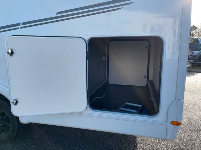 • Großzügige Heckgarage mit Rahmenabsenkung, Verzurrösen und Innenbeleuchtung (modellabhängig),