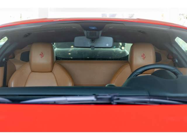 *Interieur:* Kontrastnähte in rot, gesticktes Ferrari Logo auf den Kopfstützen