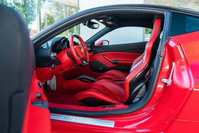 Gelber Drehzahlmesser, Goldrake Rennsitze (Große Sitzgröße), Premium Hi-Fi System, Farbige Standardnähte O.R. – Extra-Bereich, Farblich abgesetztes Lenkrad, Oberer Bereich in Lederfarbe Nero 8500, Rote Bremssättel, Carbon-Fahrerzone mit LEDs, Gesticktes Cavallino im Kopfstützen - Nero 4000, Fußmatten mit Logo, High Emotion Low Emission (HELE), „Scuderia Ferrari“-Seitenschilder, Innen-/Außenspiegel mit Abblendautomatik, Front- und Rückfahrkameras, Einparkhilfesensoren vorne und hinten, Beifahrer-Display