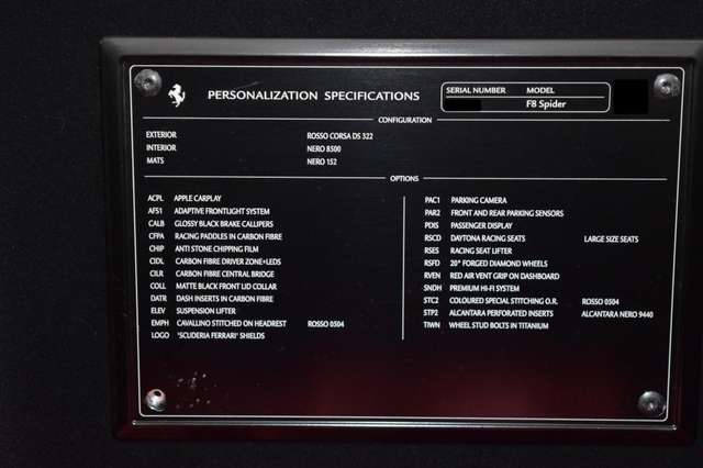 Ferrari F8 Spider Racingsitze Lifting LED JBL