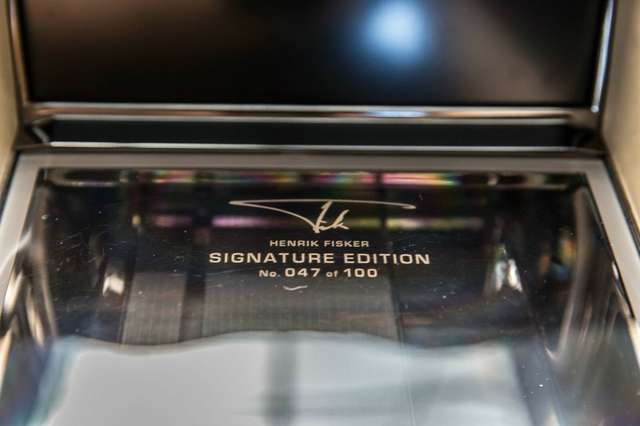 Fisker Karma Ecosport, Benzin + Elektro, Sonderserie Nr. 47 von 100 dokumentiert auf der Mittelkonsole.