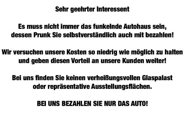Zwischenverkauf und Irrtümer für dieses Angebot sind ausdrücklich vorbehalten. Die Fahrzeugbeschreibung dient lediglich der allgemeinen Identifizierung des Fahrzeuges und stellt keine Gewährleistung im kaufrechtlichen Sinne dar. Ausschlaggebend sind einzig und allein die Vereinbarungen in der Auftragsbestätigung oder im Kaufvertrag. Den genauen Ausstattungsumfang erhalten Sie von unserem Verkaufspersonal.