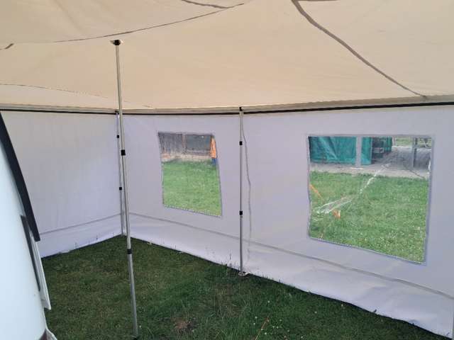 Das Auto kann auch mit einem 4,4 x 3,2 m großen Zeltdach geliefert werden, das mit einer Kederschiene an der Karosserie befestigt wird.