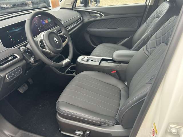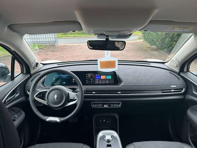 3. Bremsleuchte LED, 6 Lautsprecher, Automatisches Antibeschlag-System, Bremsenergierückgewinnung (Rekuperationssystem), Coming-Home-Lichtfunktion, Dual-Bildschirm (10,25" Instrumentenanzeige + 10,25" Infotainment Touchscreen), Elektr. Bremskraftverteilung (EBD), Elektromotor 126 kW (cont. 60 kW), Erste Hilfe-Kasten / Verbandkasten, Fahrassistenz-System: 360-Grad-Rundumschutz (Surround-Kamerasystem), Fahrassistenz-System: Abbiege-Assistent (vorn), Fahrassistenz-System: Auffahrwarnsystem (Rear Collision Warning, RCW), Fahrassistenz-System: Ausstiegswarnung (Door Open Warning, DOW), Fahrassistenz-System: Ausweich-Assistent, Fahrassistenz-System: Fahrprofilauswahl (Fahrmodi), Fahrassistenz-System: Fernlichtassistent, Fahrassistenz-System: Querverkehrs-Assistent Heck mit Bremsfunktion (Rear Cross Traffic Alert with Brake, RCTA-B), Fahrassistenz-System: Spurverlassenswarnung (LDW), Fahrassistenz-System: Spurwechselassistent (LCA), Fahrassistenz-System: Stauassistent (TJA), Gepäckraumabdeckung / Rollo, Getriebe für Elektrofahrzeug, Heckscheibe heizbar, HV-Batterie 48 kWh, Innenspiegel abblendbar, Karosserie: 5-türig, Kindersicherung, Klimaautomatik, Kopfstützen vorn und hinten verstellbar, Kühlergrill, Aktive Luftklappen, Lackierung Solid, Ladekabel mit Typ 2-Stecker (Mode 2), Lenkrad (Kunstleder), Lenksäule (Lenkrad) höhen-/längsverstellbar, Nebelschlussleuchte, One Pedal Drive (elektronisches Gaspedal), Parkbremse elektrisch mit Auto-Hold-Funktion, Radioempfang digital (DAB+), Reifen-Reparaturset, Rücksitzlehne geteilt/klappbar (60:40), Scheibenwaschdüsen heizbar, Scheinwerfer LED, Service-System: Gesichtserkennung, Sitz vorn links manuell verstellbar (6-fach), Sitz vorn rechts manuell verstellbar (4-fach), Sitzbezug / Polsterung: vegane Leder-Optik schwarz, Sonnenblenden mit Spiegel, Steckdose (12V-Anschluß) vorn, Traktionskontrolle (TCS), Türentriegelung automatisch (bei Unfall), Türgriffe außen Wagenfarbe, Warnanlage für Sicherheitsgurte