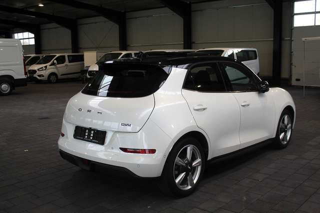 3. Bremsleuchte LED, 6 Lautsprecher, Airbag Beifahrerseite abschaltbar, Airbag Fahrer-/Beifahrerseite, Automatisches Antibeschlag-System, Außenspiegel elektr. verstell-, heiz- und anklappbar, Blinkleuchten LED in Außenspiegel integriert, Bluetooth-Schnittstelle mit Freisprecheinrichtung integriert, Bremsenergierückgewinnung (Rekuperationssystem), Coming-Home-Lichtfunktion, Dual-Bildschirm (10,25" Instrumentenanzeige + 10,25" Infotainment Touchscreen), Einparkhilfe hinten, Einparkhilfe vorn, Elektr. Bremskraftverteilung (EBD), Elektromotor 126 kW (cont. 60 kW), Erste Hilfe-Kasten / Verbandkasten, Fahrassistenz-System: 360-Grad-Rundumschutz (Surround-Kamerasystem), Fahrassistenz-System: Abbiege-Assistent (vorn), Fahrassistenz-System: Auffahrwarnsystem (Rear Collision Warning, RCW), Fahrassistenz-System: Ausstiegswarnung (Door Open Warning, DOW), Fahrassistenz-System: Ausweich-Assistent, Fahrassistenz-System: Fahrprofilauswahl (Fahrmodi), Fahrassistenz-System: Parkassistenzsystem (Park Assist), Fahrassistenz-System: Querverkehrs-Assistent Heck mit Bremsfunktion (Rear Cross Traffic Alert with Brake, RCTA-B), Fahrassistenz-System: Rückfahr-Assistent, Fahrassistenz-System: Spurverlassenswarnung (LDW), Fahrassistenz-System: Spurwechselassistent (LCA), Fahrassistenz-System: Stauassistent (TJA), Fensterheber elektrisch vorn + hinten, Gepäckraumabdeckung / Rollo, Heckscheibe heizbar, Heizungs-/Klimaanlage: Wärmepumpe, HV-Batterie 63 kWh, Induktionsladeschale für Smartphone, Innenspiegel mit Abblendautomatik, Isofix-Aufnahmen für Kindersitz an Rücksitz, Karosserie: 5-türig, Kindersicherung, Klimaautomatik, Kopfstützen vorn und hinten verstellbar, Kühlergrill, Aktive Luftklappen, Lackierung Solid, Ladekabel mit Typ 2-Stecker (Mode 2), Lenkrad (Kunstleder), Lenkrad heizbar, Lenksäule (Lenkrad) höhen-/längsverstellbar, LM-Felgen, Mittelarmlehne hinten mit Getränkehalter, Navigationssystem, Nebelschlussleuchte, Notrufsystem (eCall), One Pedal Drive (elektronisches Gaspedal), Panorama-Schiebedach elektrisch, Parkbremse elektrisch mit Auto-Hold-Funktion, Radioempfang digital (DAB+), Reifen-Reparaturset, Rücksitzlehne geteilt/klappbar (60:40), Scheibenwaschdüsen heizbar, Scheinwerfer mit Begrüßungsfunktion (Welcome Light), Seitenairbag vorn, Seitenairbag vorn mitte (Center-Airbag), Service-System: Gesichtserkennung, Sitz vorn links elektr. verstellbar (6-fach), Sitz vorn rechts elektr. verstellbar (4-fach), Sitzbelüftung vorn, Sitzbezug / Polsterung: vegane Leder-Optik schwarz, Sitze vorn mit Massagefunktion, Sitzheizung vorn, Sonnenblenden mit Spiegel, Sprachassistent Hello Ora, Steckdose (12V-Anschluß) vorn, Traktionskontrolle (TCS), Türentriegelung automatisch (bei Unfall), Türgriffe außen Wagenfarbe, USB-Anschlüsse vorn und hinten, Verglasung hinten abgedunkelt (Privacy Glass), Vorhangairbag vorn und hinten, Warnanlage für Sicherheitsgurte