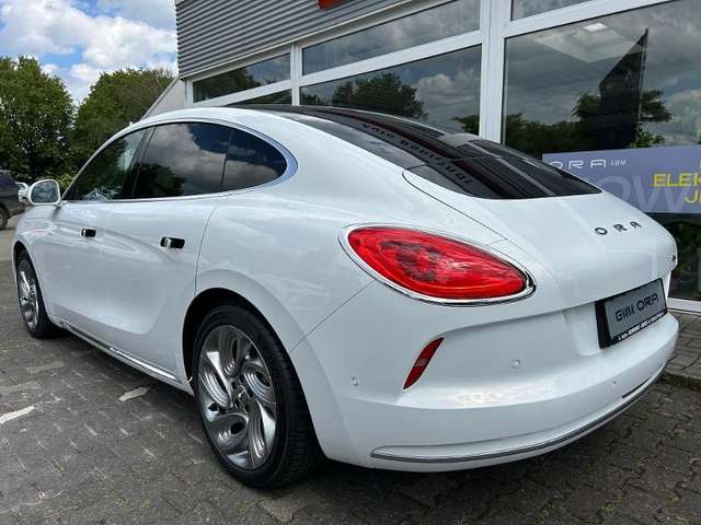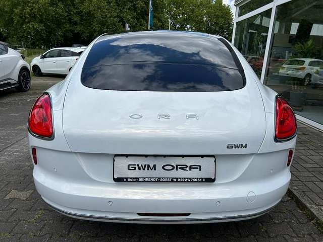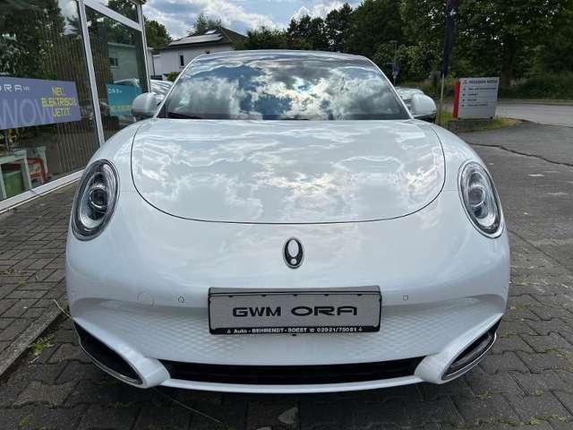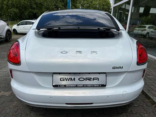 Versenkbare Türgriffe, Fensterscheiben vorn und hinten, rahmenlos, 19-Zoll Leichtmetallfelgen, LED-Scheinwerfer, Ambientenbeleuchtung, mehrfarbig und pulsierend, Sitze / Lenkrad aus hochwertiger Ledernachbildung, Heckspoiler, Innenspiegel automatisch abblendend, Digitales 10,25 Fahrerinformationsdisplay, 12,3 Infotainmentsystem mit Navigation, Sprachassistent Hello Ora, Fernsteuerung via GWM App, Smart-Key-System inkl. Smart-Start-Funktion, Apple CarPlay & Android Auto, USB-Schnittstellen vorn und hinten, Induktive Smartphone-Ladefunktion, 11 Lautsprecher, Ladekabel (Mode-2) für 230-V-Steckdose, Fahrassistenzsysteme, 360° Rundumsichtkamera, Einparkhilfe vorn und hinten, Automatischer Parkassistent, Automatischer Rückfahrassistent, 7 Airbags, Insassenerkennung, Elektrische Heckklappe (sensorgesteuert), Panorama-Glasdach, Außenspiegel elektrisch einstell-, beheiz- und anklappbar, Fensterscheiben hinten dunkel getönt, Frontscheibe heizbar, Fahrersitz 6-fach elektrisch verstellbar (neigungs-/längs-/höhenverstellbar), Beifahrersitz 4-fach elektrisch verstellbar (neigungs-/längsverstellbar), Fahrer- und Beifahrersitz beheizbar, Sitz vorn links mit Massagefunktion, Sitz vorn rechts mit Massagefunktion, Lenkrad heizbar, Klimaautomatik 2-Zonen, Wärmepumpen-Funktion