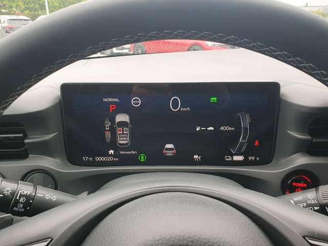 6 Lautsprecher, Airbag Beifahrerseite abschaltbar, Aktive Kopfstützen vorn, Ambiente-Beleuchtung Armaturenbrett, Ambiente-Beleuchtung Türverkleidung vorn, Anzeige für Reifendruck im Display, Audiosystem: Radio/MP3-Player, Ausschaltverzögerung für Innenbeleuchtung, Autom. Begleitfunktion der Beleuchtung (Coming Home, Leaving Home), Automatische Fahrlichtschaltung / Lichtsensor, Außenspiegel asphärisch, links, Außenspiegel elektr. anklappbar, Außenspiegel elektr. verstell- und heizbar, beide, Außenspiegel mit Bordsteinautomatik, rechts, Außenspiegel schwarz lackiert, Bremsassistent, Bremsenergierückgewinnung (Rekuperationssystem), Brillenhalter im Dachhimmel integriert, Dachantenne im Haifischflossen-Design, Dachhimmel hell, Dachspoiler, Einparkhilfe vorn und hinten, Elektr. Bremskraftverteilung, Elektromotor 150 kW (cont. 60 kW), Fahrassistenz-System: Bergabfahrhilfe (HDA), Fahrassistenz-System: Berganfahrhilfe, Fahrassistenz-System: Fahrprofilauswahl (Drive Mode), Fahrassistenz-System: Fernlichtassistent (HSS), Fahrassistenz-System: Intelligente Geschwindigkeitsanpassung (Tempomat) mit Abstandsregelung I-ACC, Fahrassistenz-System: Kollisionswarnsystem mit Bremseingriff und Beschleunigungskontrolle (LSBC), Fahrassistenz-System: Kollisionswarnsystem mit Bremseingriff und Fußgängererkennung (CMBS), Fahrassistenz-System: Müdigkeits-Warner (Driver Attention Monitor), Fahrassistenz-System: Sicherheitssystem mit automatischem Notruf (ERA GLONASS / eCall), Fahrassistenz-System: Spurhalteassistent (LKAS / LDW), Fahrassistenz-System: Spurverlassenswarnung (Lane Departure Warning, LDW), Fahrassistenz-System: Stauassistent (LSF), Fahrassistenz-System: Verkehrszeichenerkennung, Fensterheber elektrisch vorn und hinten, mit Auf-/Ab-Automatik, Freisprecheinrichtung (Bluetooth) mit Sprachsteuerung, Fußmatten, Fußraumbeleuchtung vorn LED, Gepäcknetz an Vordersitzlehne rechts, Gepäckraumabdeckung / Rollo, Getriebe für Elektrofahrzeug, Getränkehalter hinten, Getränkehalter vorn, Gurtstraffer, Handschuhfach beleuchtet, Head-up-Display, Heckleuchten LED, HV-Batterie 68,8 kWh (Lithium-Ionen), Induktionsladeschale für Smartphone, Infotainment-System: Honda Connect mit 15" Touchscreen / Navigationssystem / Internetbasierende Dienste / DAB-Tuner, Innenausstattung: Interieur-Oberfläche Silber, Innenraumfilter: Pollenfilter, Innenspiegel mit Abblendautomatik, Intelligenter Geschwindigkeits-Begrenzer (ISL), Isofix-Aufnahmen für Kindersitz, Karosserie: 5-türig, Klimaautomatik 2-Zonen, Knieairbag Fahrerseite, Kofferraumdeckel / Heckklappe elektr. betätigt (Öffnung, sensorgesteuert), Kombiinstrument Digitalanzeige 7 Zoll, Kopf-Airbag-System, Ladekabel mit Typ 2-Stecker (Mode 3), Lendenwirbelstütze Sitz vorn links, elektr. verstellbar, Lenksäule (Lenkrad) höhen-/längsverstellbar, Leseleuchten hinten, Leseleuchten vorn, Leuchtweitenregelung automatisch, LM-Felgen, Mittelarmlehne hinten, Motorsound-System (Acoustic Vehicle Alerting System, AVAS), Multifunktion für Lenkrad, Nebelscheinwerfer LED, Nebelschlussleuchte, Notbremssignal, Parkbremse elektrisch, Radstand Standard, Reifen-Reparaturset, Rückfahrkamera, Rücksitzlehne geteilt/klappbar, Scheinwerfer LED, Seitenairbag hinten, Seitenairbag vorn, Seitenairbag vorn mitte (Center-Airbag), Sitz vorn links elektr. verstellbar, Sitz vorn links höhenverstellbar, Sitzbezug / Polsterung: Kunstleder, Sitzheizung vorn, Smartphone Schnittstelle (Apple CarPlay & Android Auto), Sonderlackierung Crystal Black Pearl, Sonnenblenden mit Make-up-Spiegel, Sonnenblenden mit Spiegel (beleuchtet), Sport-Pedalerie, Steckdose (12V-Anschluß) im Koffer-/Laderaum, Steckdose (12V-Anschluß) in Armaturentafel, Türgriffe außen Wagenfarbe, USB-Ladeanschluß hinten (2-fach), USB-Ladeanschluß vorn, USB-Schnittstelle, Verglasung hinten abgedunkelt (Privacy Glass), Verzurrösen Koffer-/Laderaum