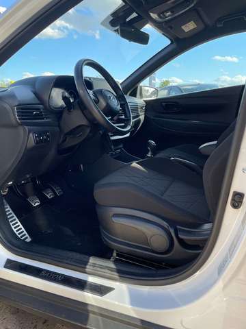 Ablagetasche an Vordersitzlehnen, Airbag Beifahrerseite, Airbag Beifahrerseite abschaltbar, Airbag Fahrerseite, Aktives Bremslicht (ESS), Ambiente-Beleuchtung, Audiosystem: Radio RDS, Außenspiegel elektr. anklappbar, Außenspiegel elektr. verstell- und heizbar, beide, Außenspiegel Phantom Black, Blinkleuchte in Außenspiegel integriert, Bremsassistent, Dachhimmel schwarz, Dachspoiler, Digital Cockpit (Instrumentenanzeige Digital), Einparkhilfe hinten, Einschaltautomatik für Fahrlicht / Lichtsensor, Elektr. Bremskraftverteilung, Elektron. Stabilitätskontrolle (ESC) mit Bremsassistent, Fahrassistenz-System: aktiver Spurhalteassistent (LKAS, Lane Keep Assist System), Fahrassistenz-System: Aufmerksamkeits-Assistent, Fahrassistenz-System: Autonome Notbremsfunktion inkl. Frontkollisionswarnung (FCA), Fahrassistenz-System: Berganfahrhilfe, Fahrassistenz-System: Fahrprofilauswahl (Drive Mode), Fahrassistenz-System: Fernlichtassistent, Fahrassistenz-System: Insassenalarm (Rear Occopant Alert, ROA), Fahrassistenz-System: Multikollisionsbremse (Multi Collision Brake), Fahrassistenz-System: Sicherheitssystem mit automatischem Notruf (ERA GLONASS / eCall), Fahrassistenz-System: Verkehrszeichenerkennung, erweitert (Geschwindigkeits-Regel-/Begrenzeranlage), Fensterheber elektrisch hinten, Freisprecheinrichtung Bluetooth, Gegenlenkunterstützung (Vehicle Stability Management, VSM), Gepäck-/Laderaumleuchte, Gepäckraumabdeckung / Rollo, Getränkehalter vorn, Gurtstraffer, Heckscheibe heizbar, Isofix-Aufnahmen für Kindersitz, Karosserie: 5-türig, Klimaautomatik, Kopf-Airbag-System, Kopfstützen hinten verstellbar, Kühlergrill schwarz (glanzlackiert), Lenkrad (4-Speichen), Lenksäule (Lenkrad) höhenverstellbar, Lenksäule (Lenkrad) längsverstellbar, Leseleuchte, LM-Felgen, Motor 1,0 Ltr. - 74 kW TGDI KAT, Motorhaubenisolierung, Navigations-Paket, Otto-Partikelfilter (OPF), Radioempfang digital (DAB+), Radstand 2580 mm, Reifen-Reparaturkit, Reifendruck-Kontrollsystem, Rückfahrkamera, Rücksitzlehne geteilt/klappbar, Schadstoffarm nach Abgasnorm Euro 6d, Schalt-/Wählhebelgriff Leder, Scheibenbeschlagerkennung / Regelung, Seitenairbag vorn, Sicherheitsgurte vorn höhenverstellbar, Sitz vorn links höhenverstellbar, Sitzbezug / Polsterung: Stoff, Sonnenblenden mit Spiegel (beleuchtet), Start/Stop-Anlage, Steckdose (12V-Anschluß) vorn, Türgriffe außen Wagenfarbe, Unterfahrschutz hinten, USB-Anschluss + AUX-IN-Anschluss, USB-Anschluss hinten, Verglasung getönt, Verglasung hinten abgedunkelt (Privacy Glass), Warnanlage für Sicherheitsgurte, Fahrer-/Beifahrerseite, Wireless SmartLink (Apple CarPlay)